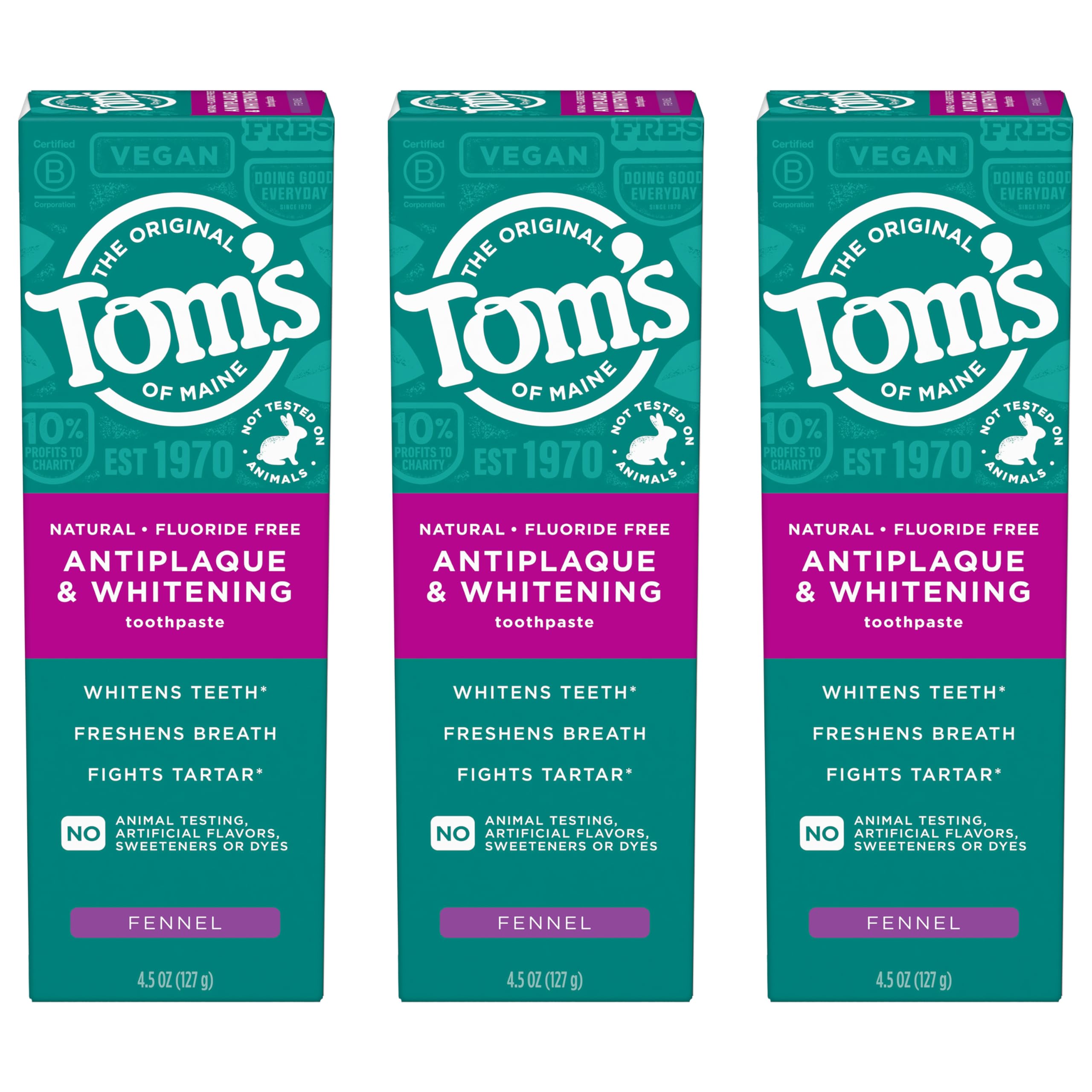 Tom's of Maine Fluoride-Free Antiplaque & Whitening Natural Toothpaste, Peppermint, 5.5 oz. (Pack of 2)
