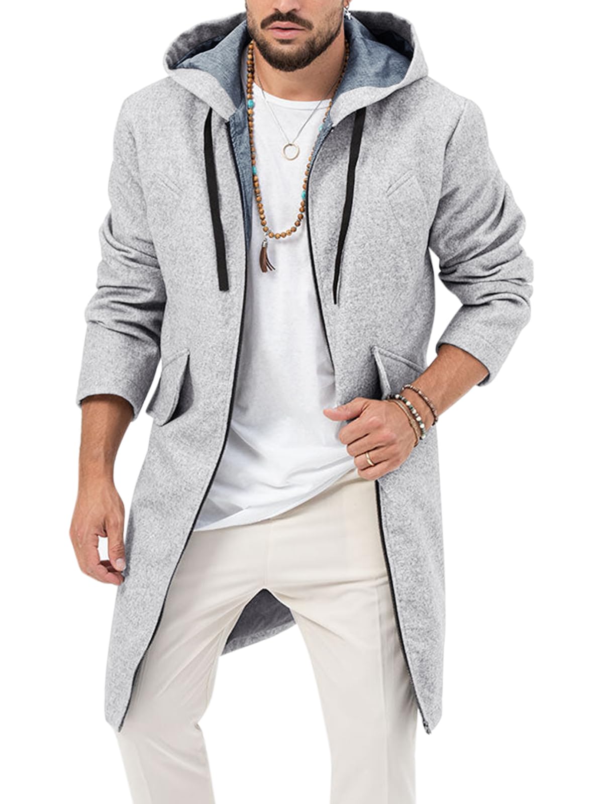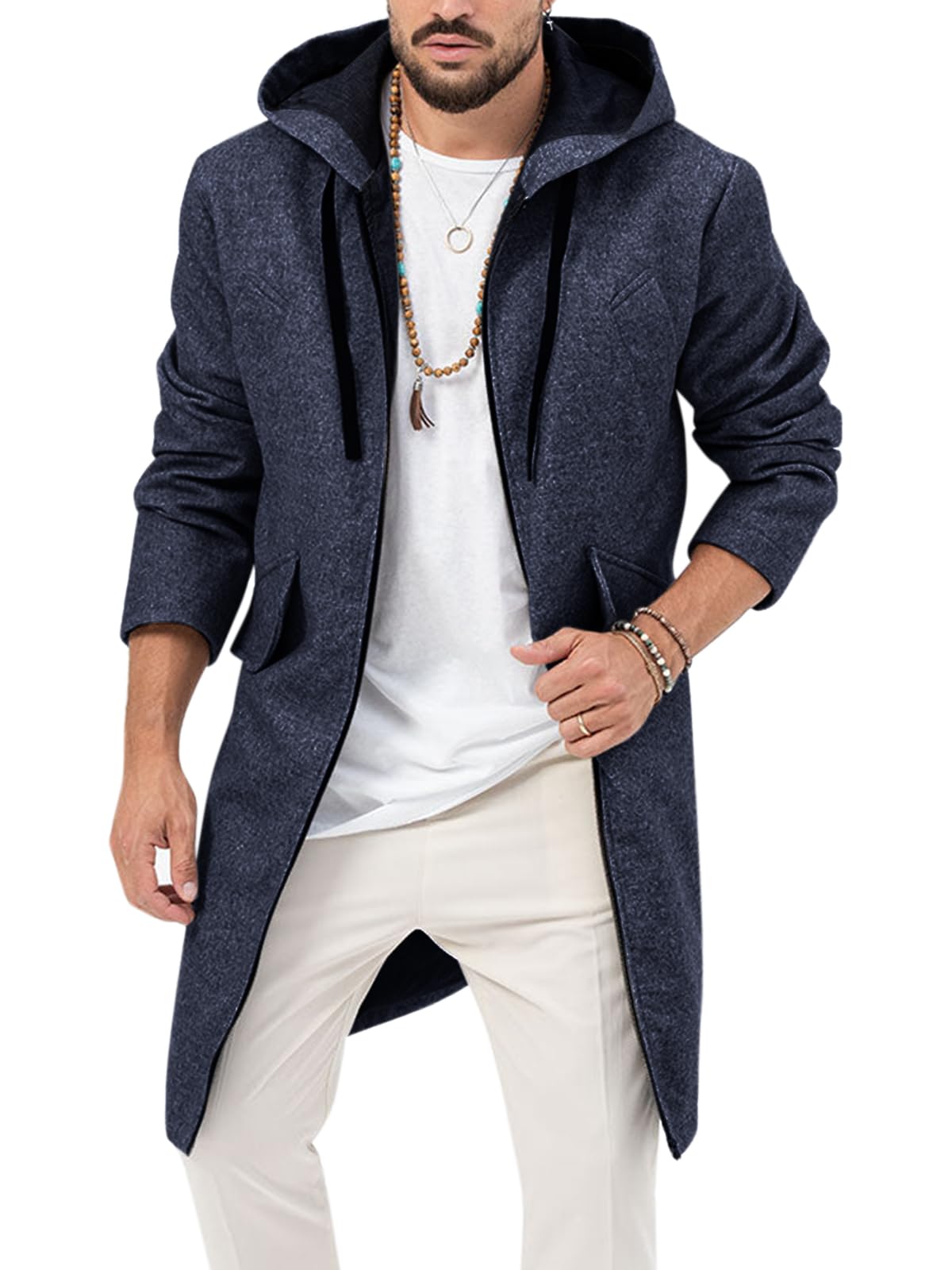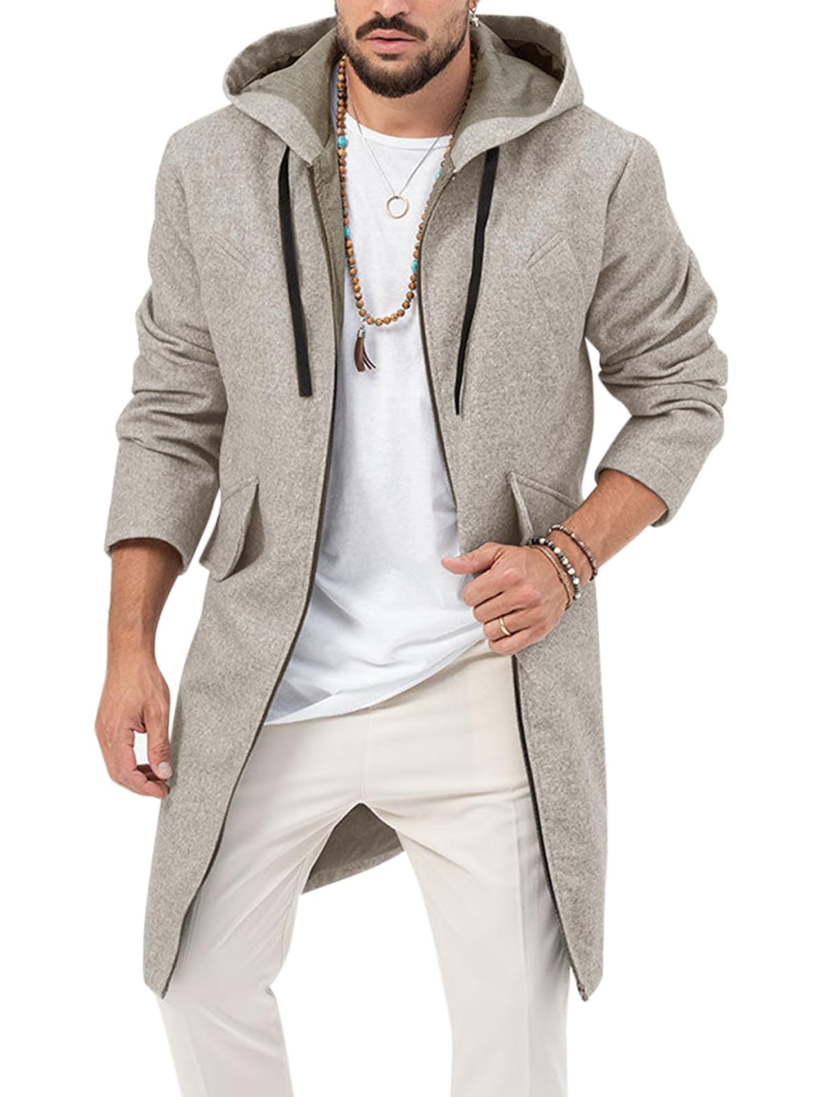 ZIWOCH Mens Trench Coat Wool Blend Hoodie Long Jacket Full Zip Winter Classic Business Overcoat