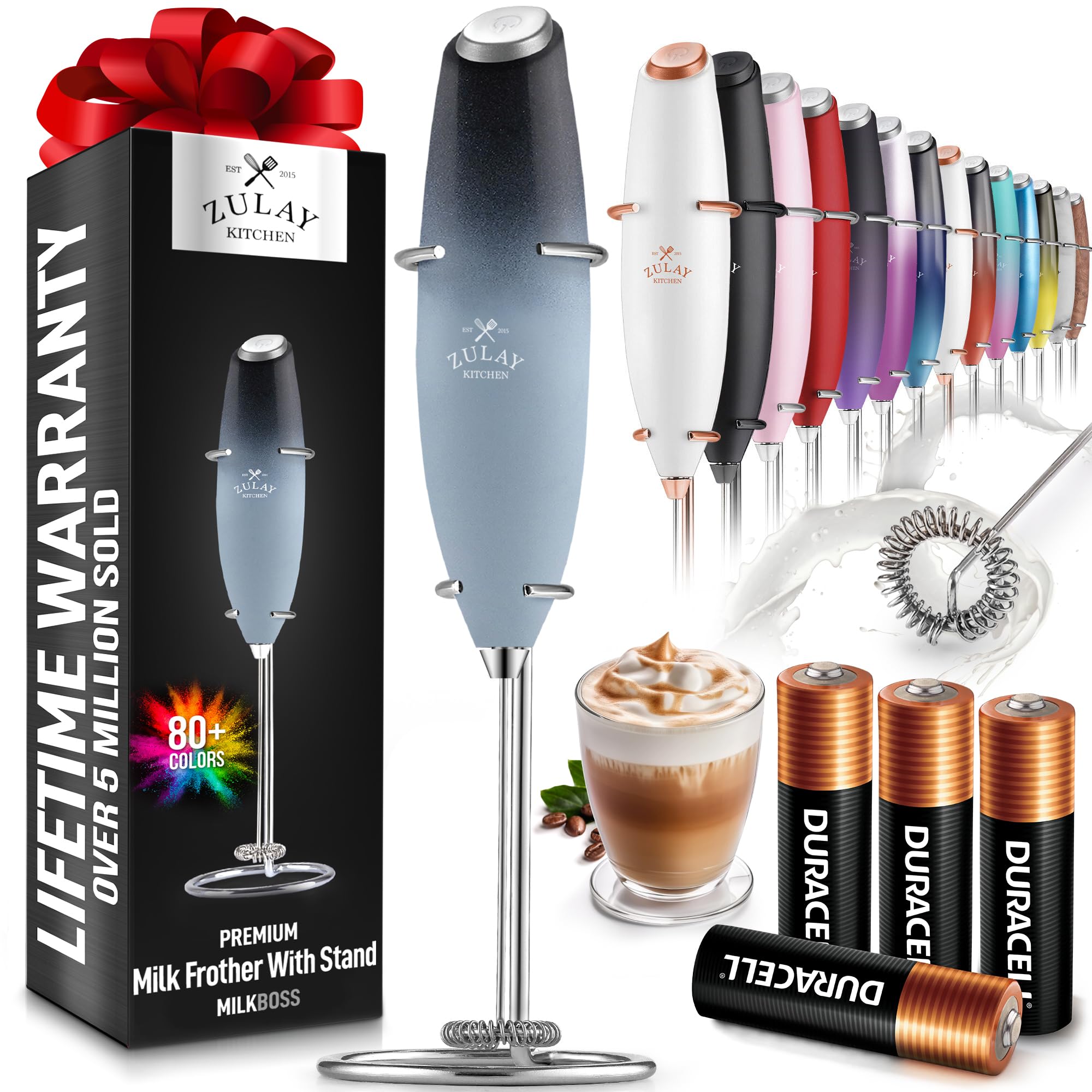 Zulay Kitchen Powerful Milk Frother Wand With 2 Duracell Batteries - Ultra Fast Handheld Drink Mixer - Electric Whisk Foam Maker for Coffee, Lattes, Cappuccino, Matcha, Hot Chocolate & Creamer - Black