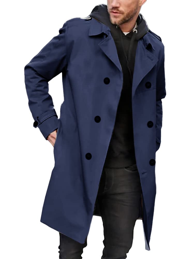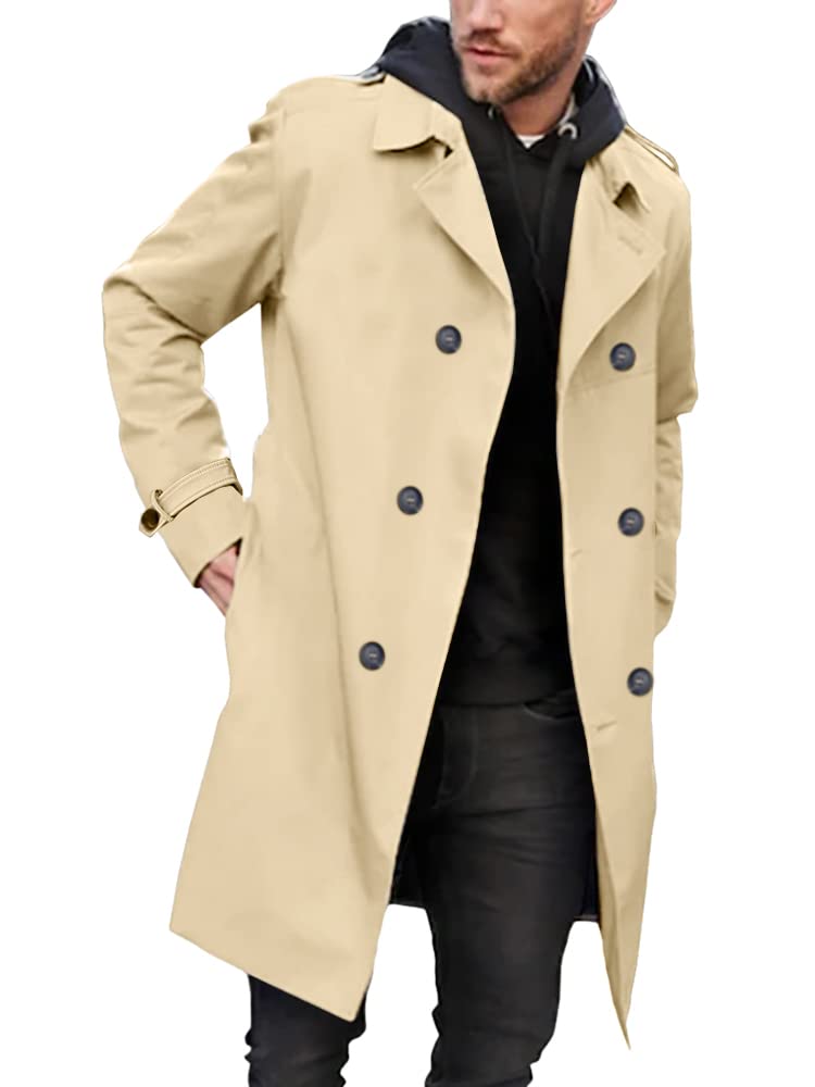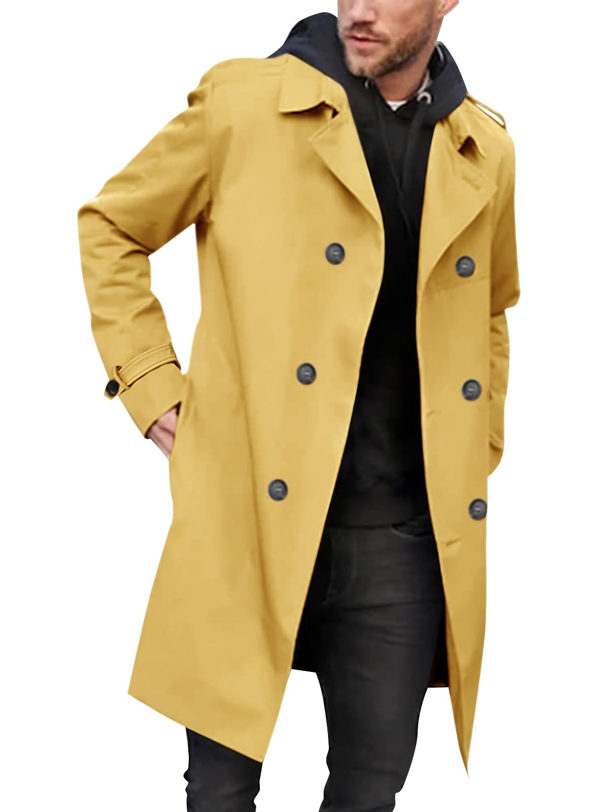 Gafeng Mens Double Breasted Trench Coat Notched Lapel Casual Slim Fit Long Windbreaker Overcoat
