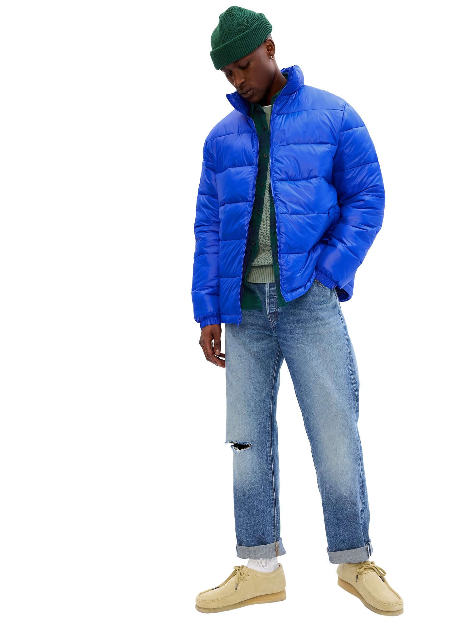 This men's puffer jacket has a straight; easy fit that flatters any body type. The quilted weather resistant outer shell...