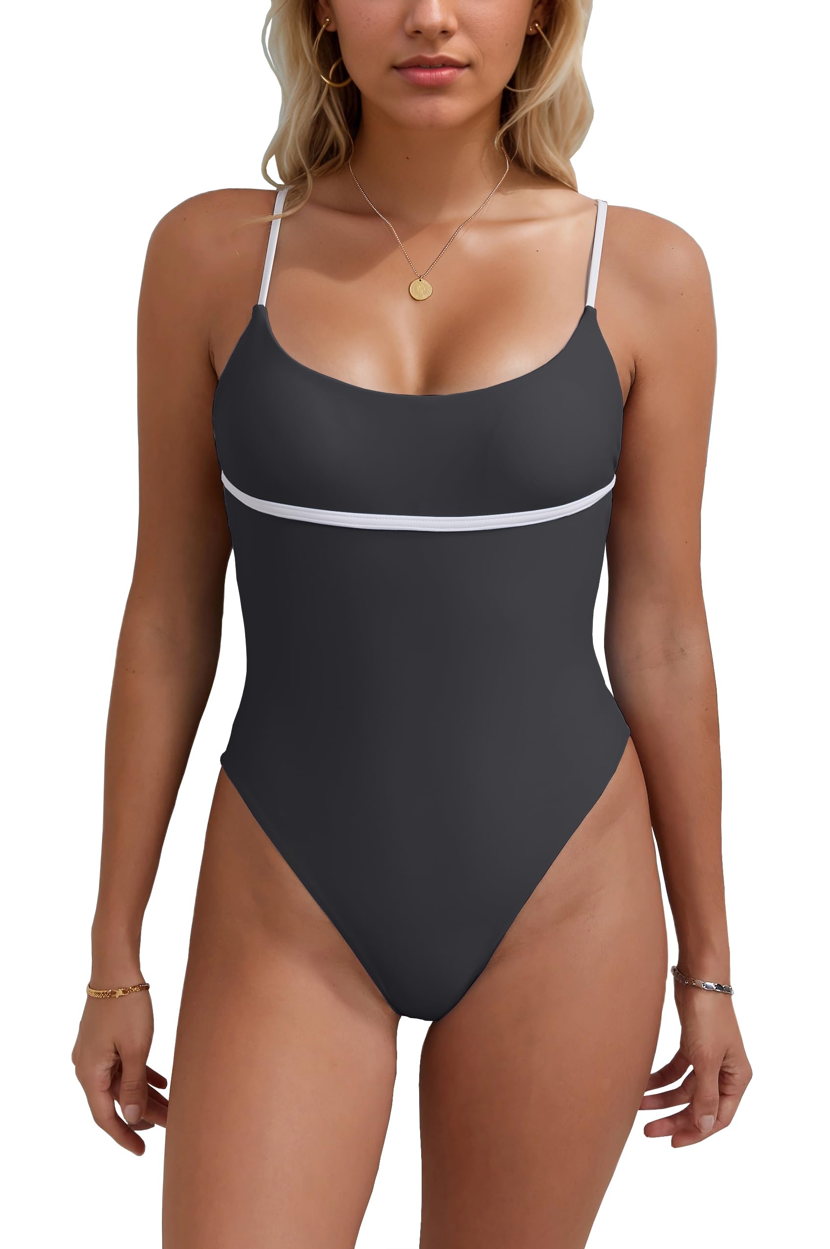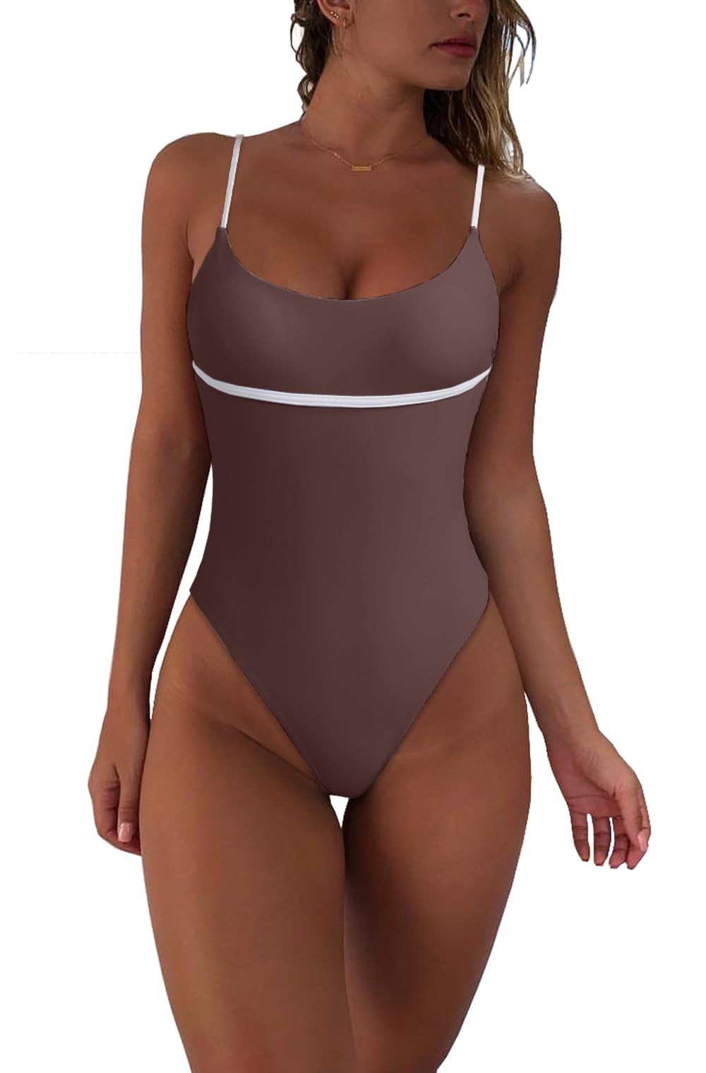 geluboao Women Sexy Color Block Open Back Bathing Suit One Piece Cheeky High Cut Thong Swimsuits