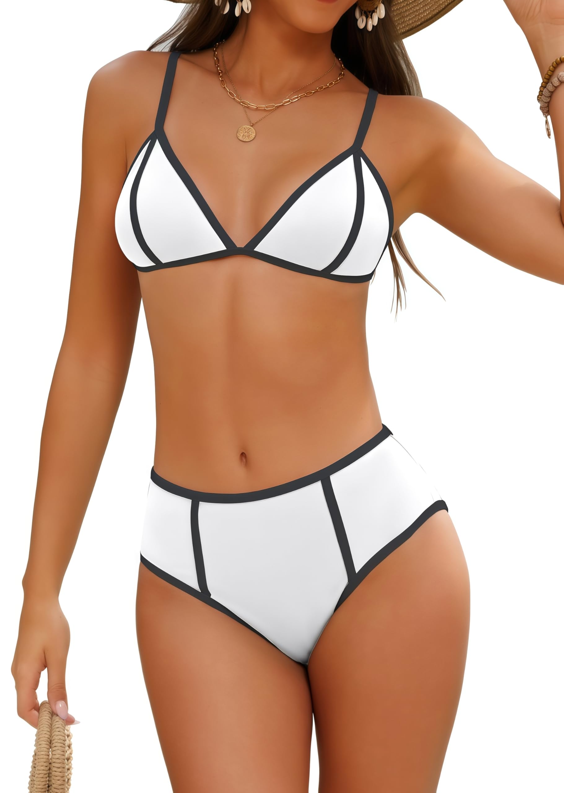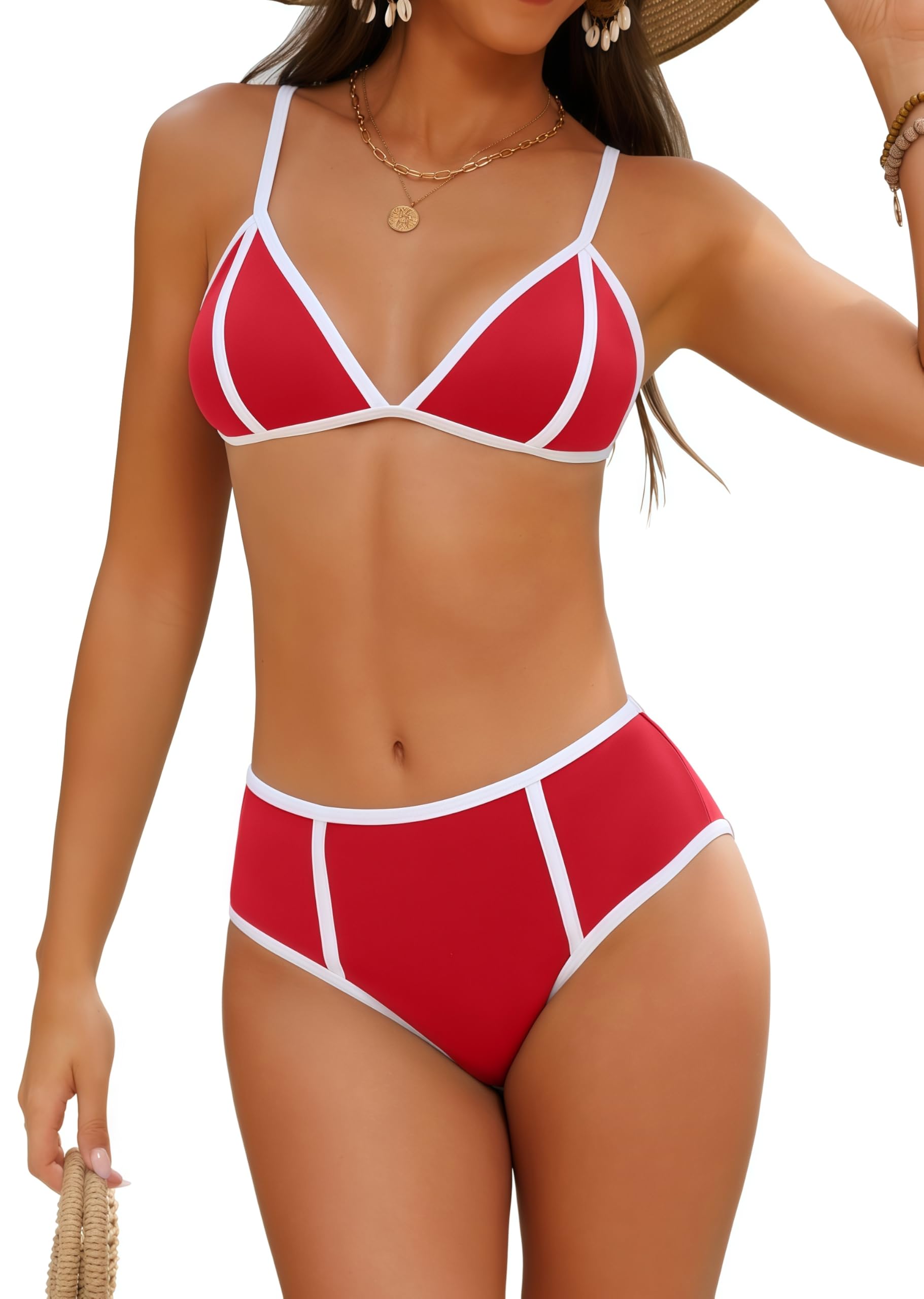 geluboao Bikini Sets for Women Two Piece Color Block Swimwear Sexy Triangle High Cut Swimsuit