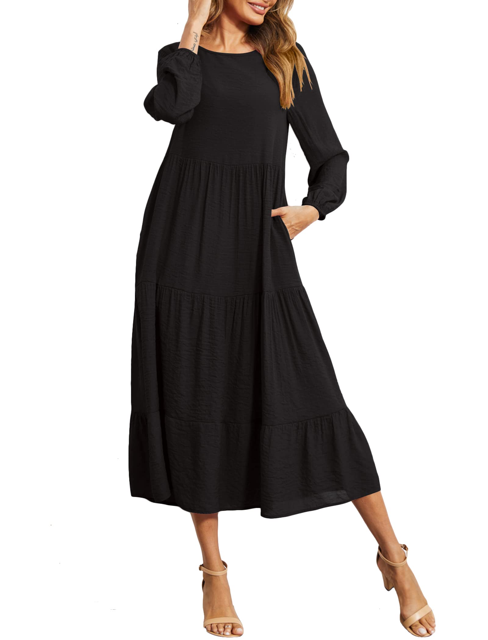 Halife Women's Summer Casual Maxi Dresses Flowy Ruffle Boho Long Dresses with Pockets