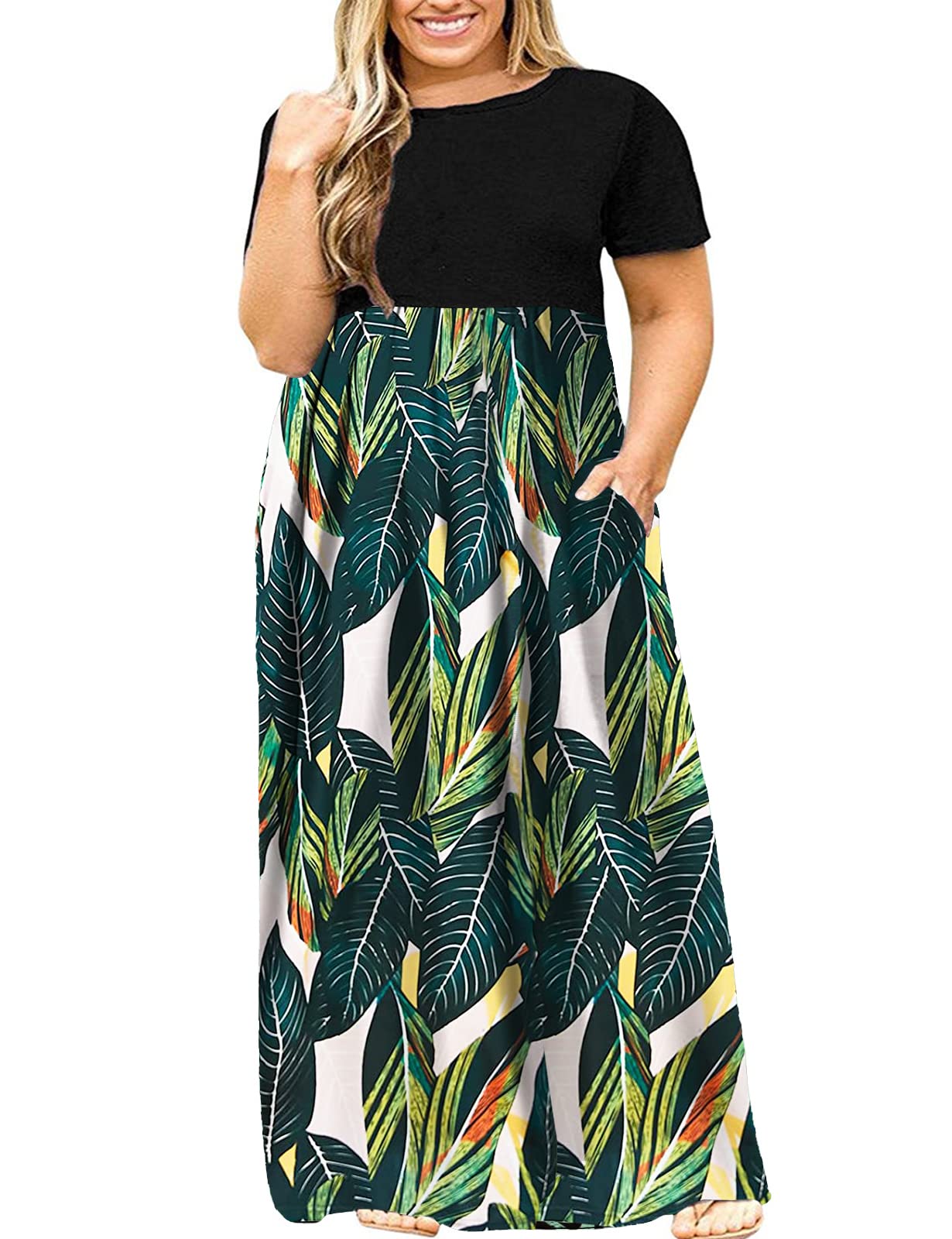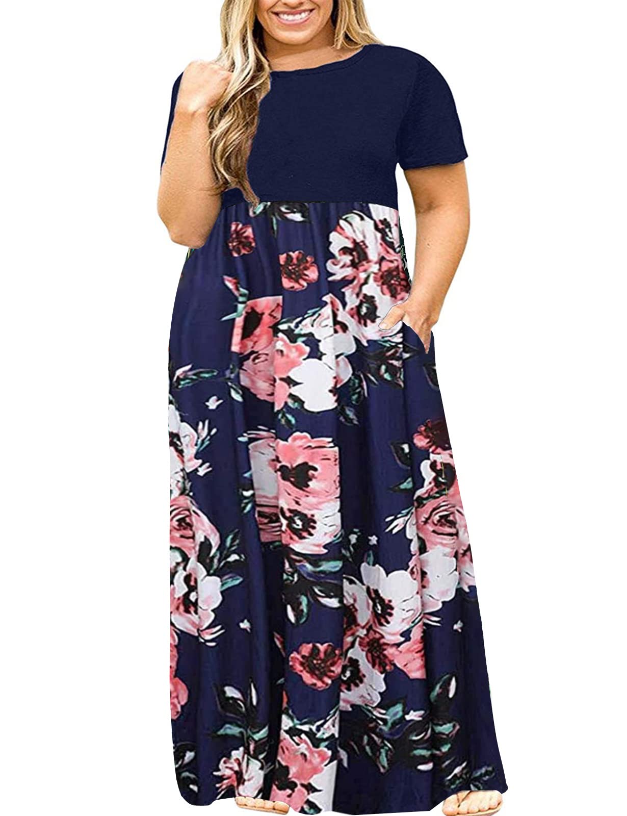 Halife Plus Size Dresses for Curvy Women Summer Casual Beach Long Maxi Dress with Pockets