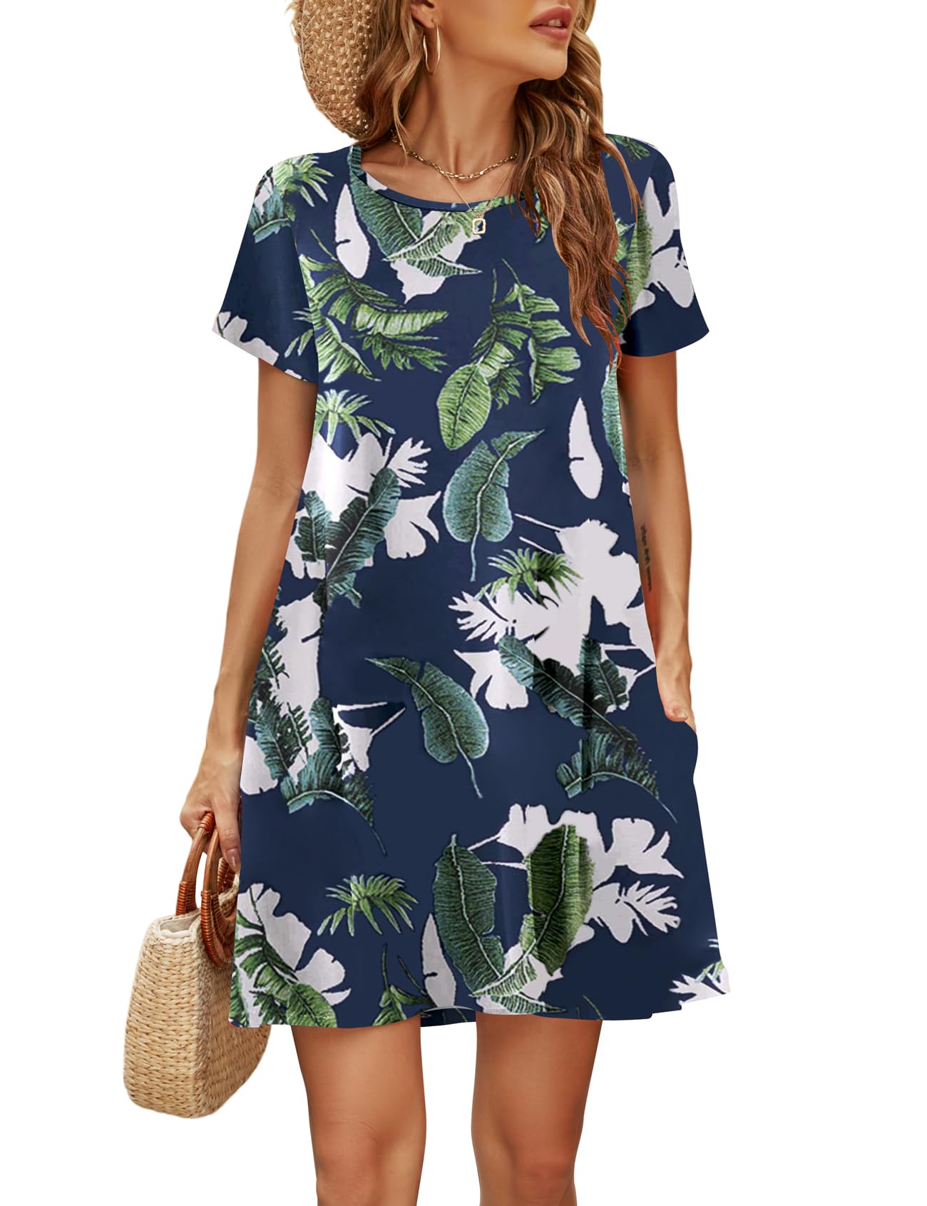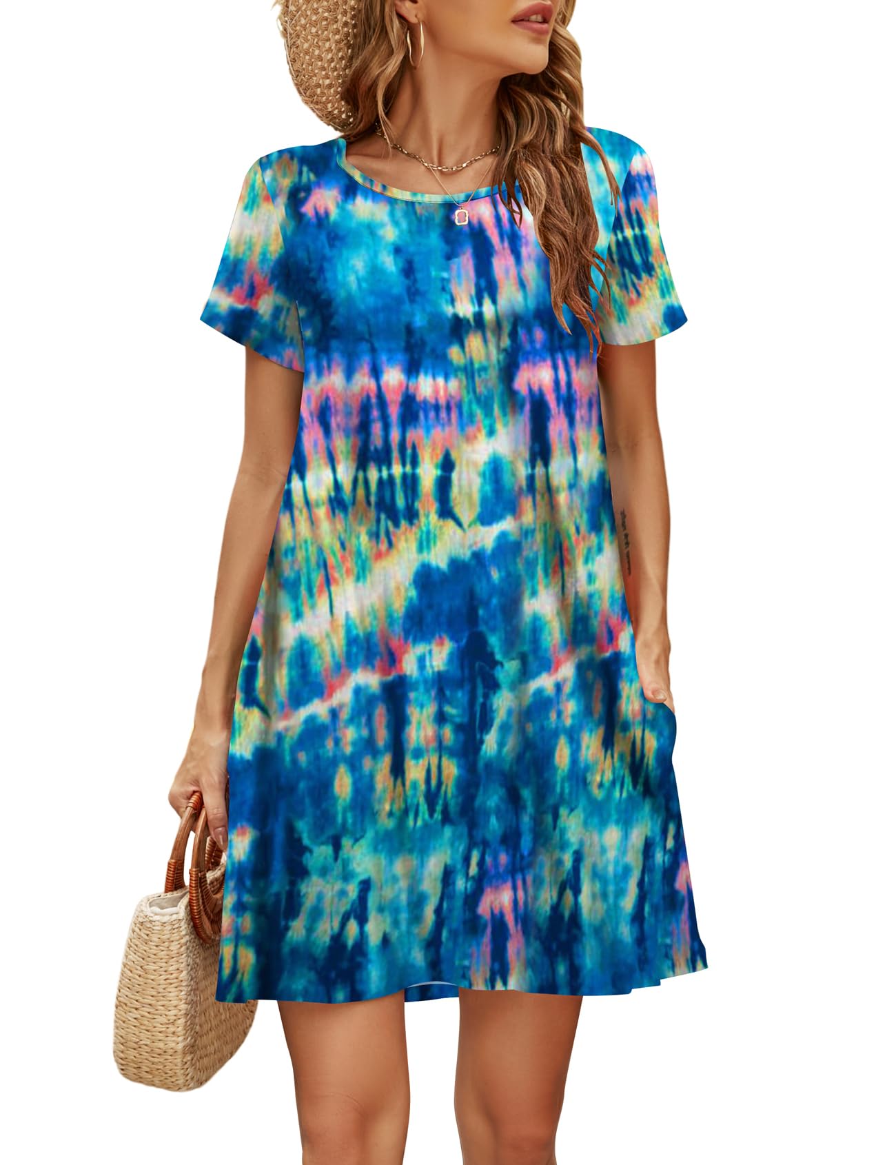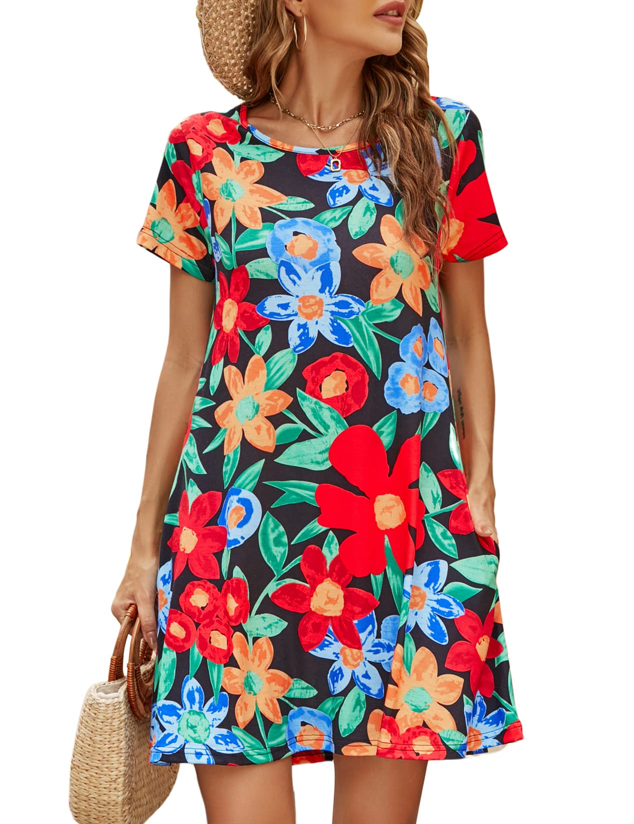 Halife Womens Summer Dresses Casual Sleeveless Tshirt Sundresses Vacation Beach Cover Up Dress with Pockets
