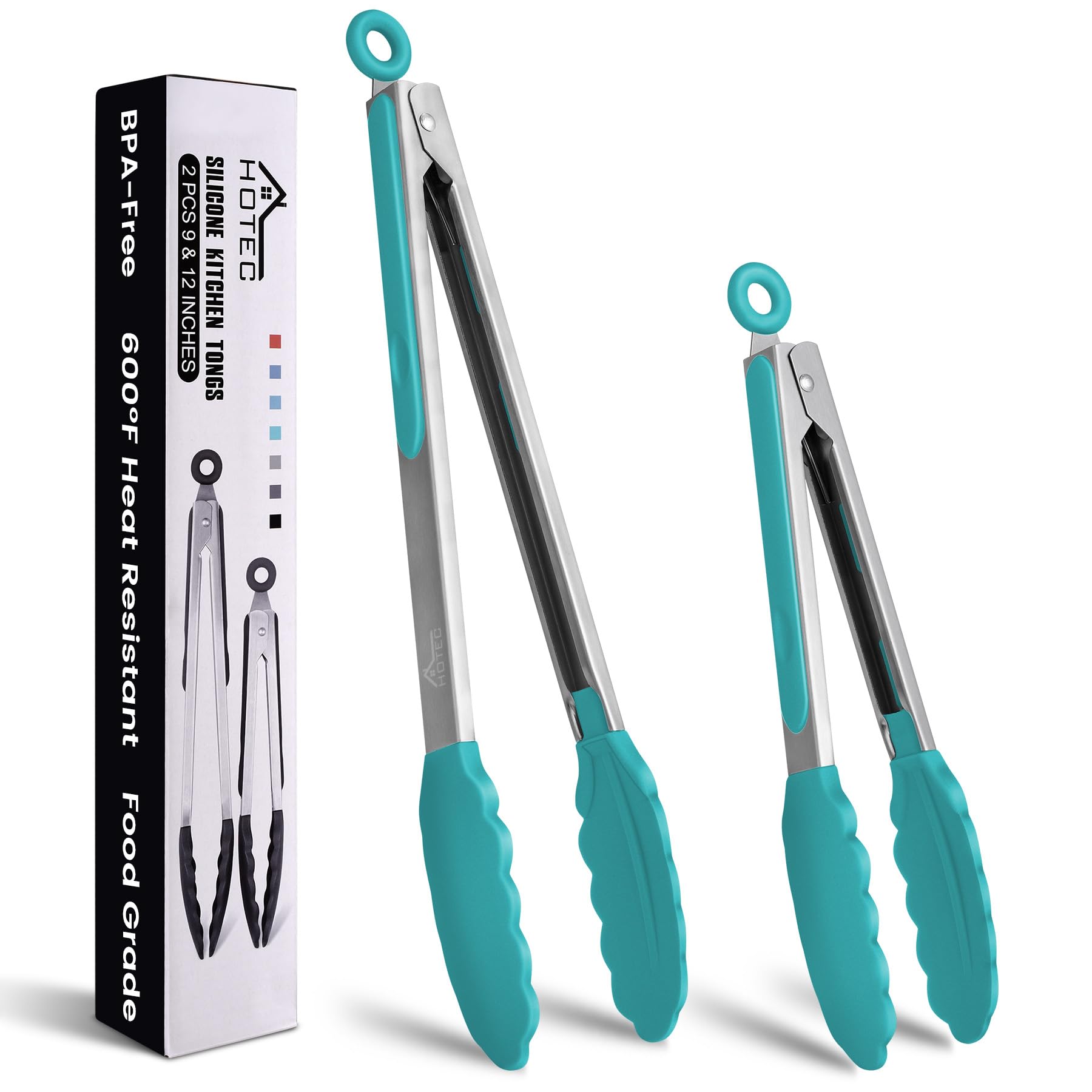 HOTEC Premium Stainless Steel Locking Kitchen Tongs with Silicon Tips, Set of 2-9" and 12"