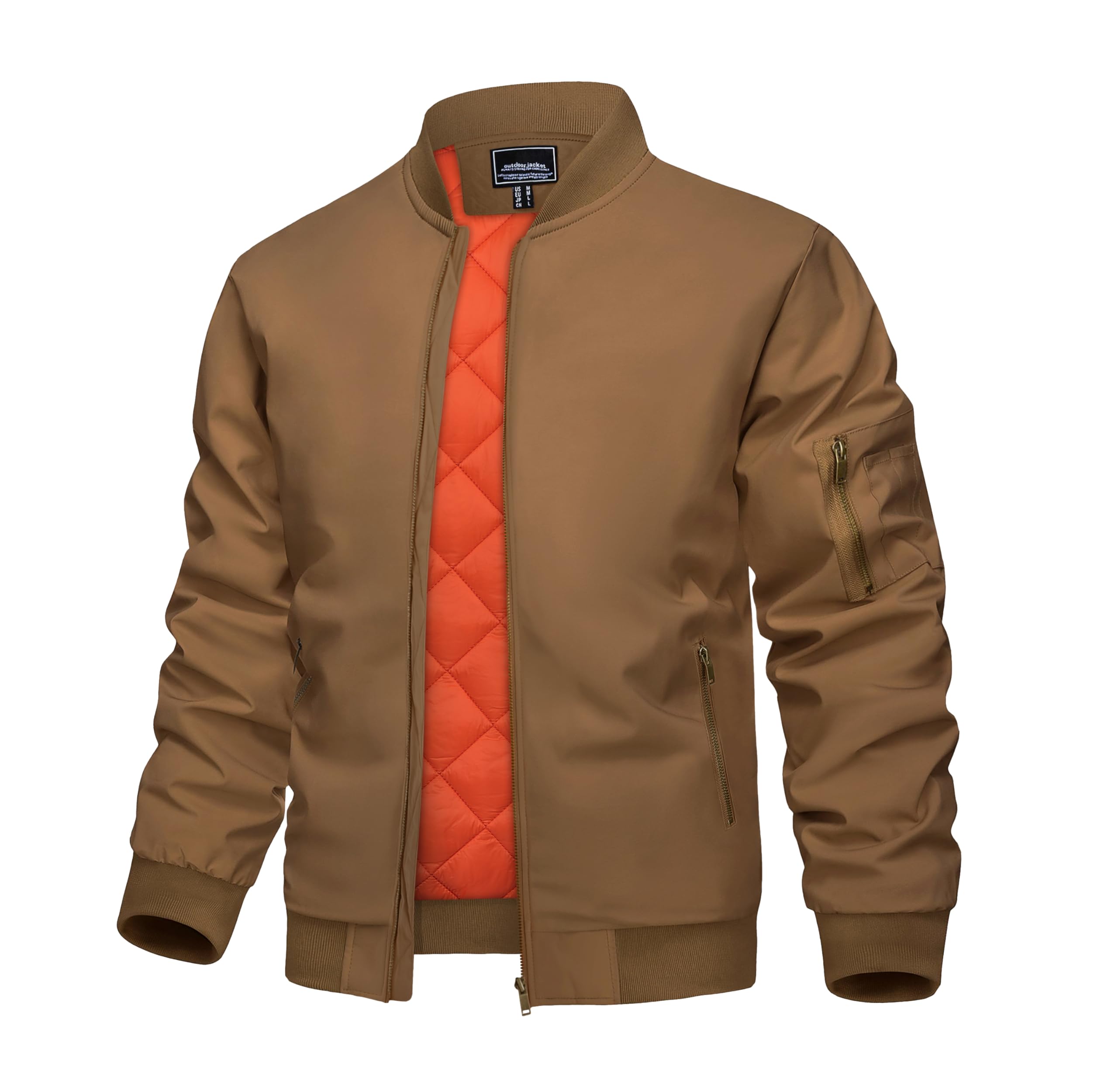 KEFITEVD Men's Jacket Casual Windproof Bomber Jackets Full Zip Windbreaker Warm Winter Padded Coats
