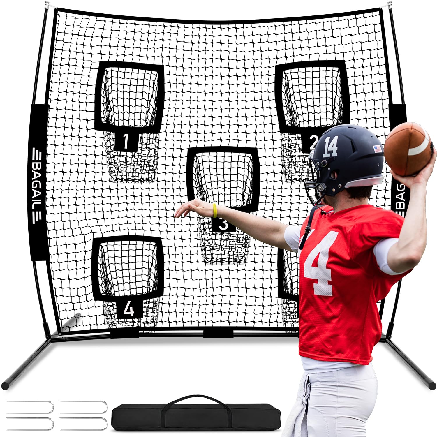 BAGAIL Football Throwing Net - 9 Target Pockets, Easy Setup, Heavy-duty - Portable QB Accuracy Trainer, Fun Target Practice Net...