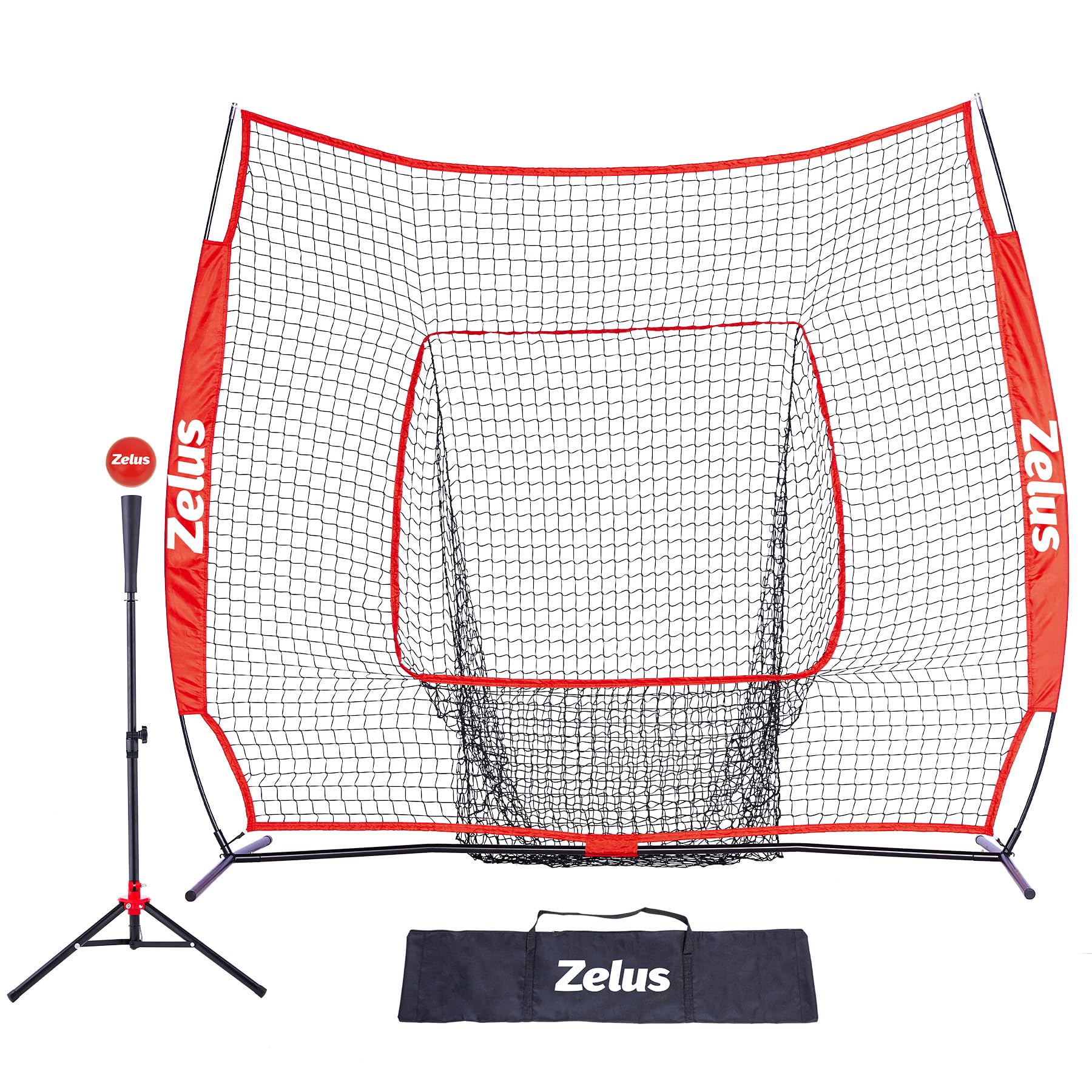 7×7 Baseball Net with Tee Kit, Portable Baseball Net for Hitting and Pitching, Softball Net with Tee, Carry Bag & Weighted Baseball