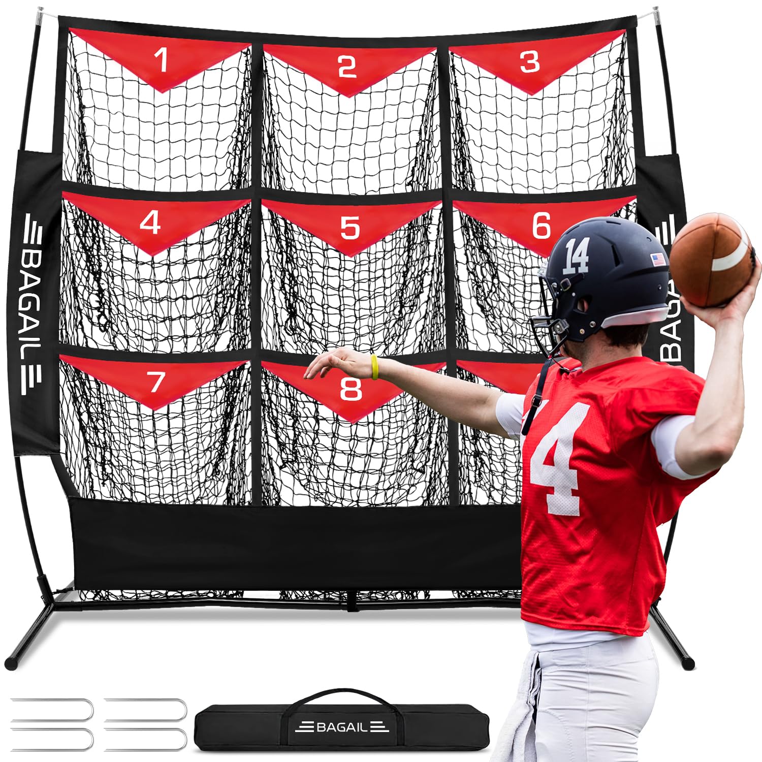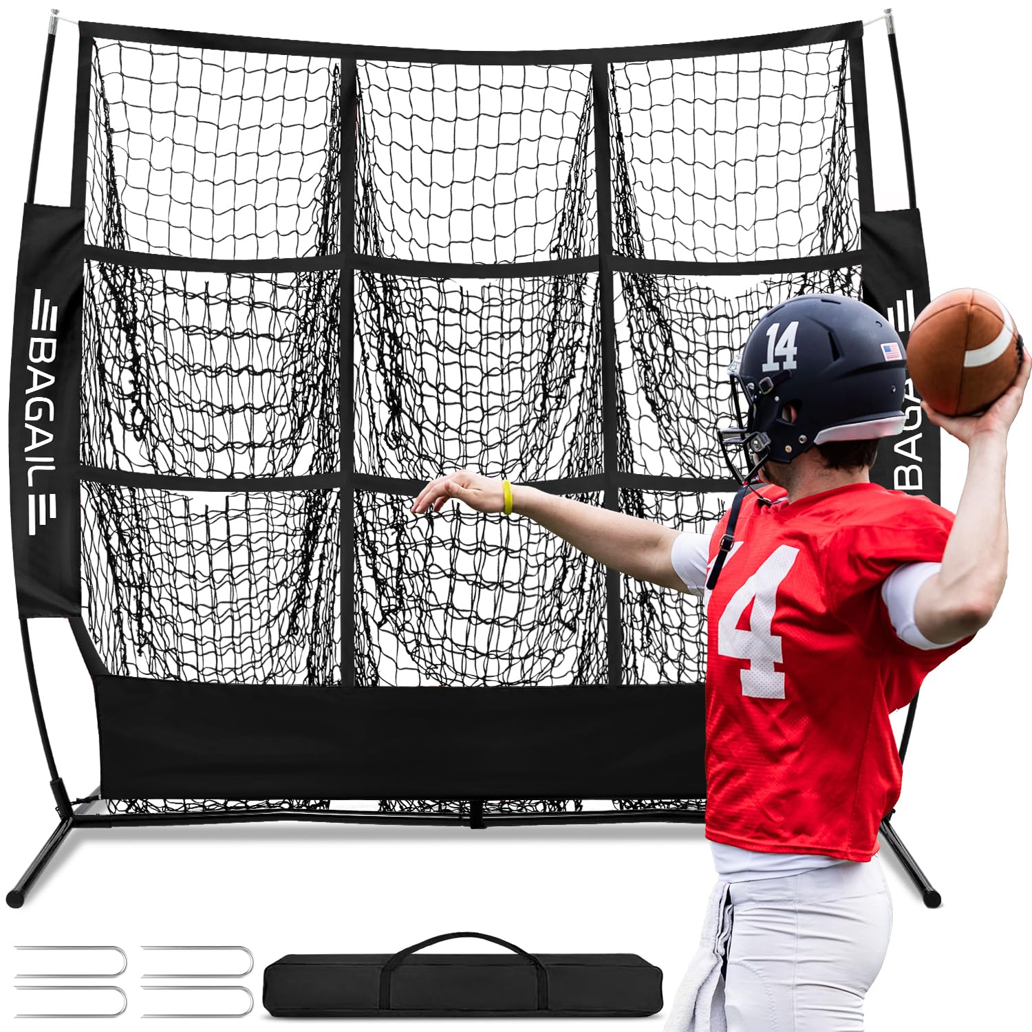 BAGAIL Football Throwing Net - 9 Target Pockets, Easy Setup, Heavy-Duty - Portable QB Accuracy Trainer, Fun Target Practice Net for Football with Carry Bag