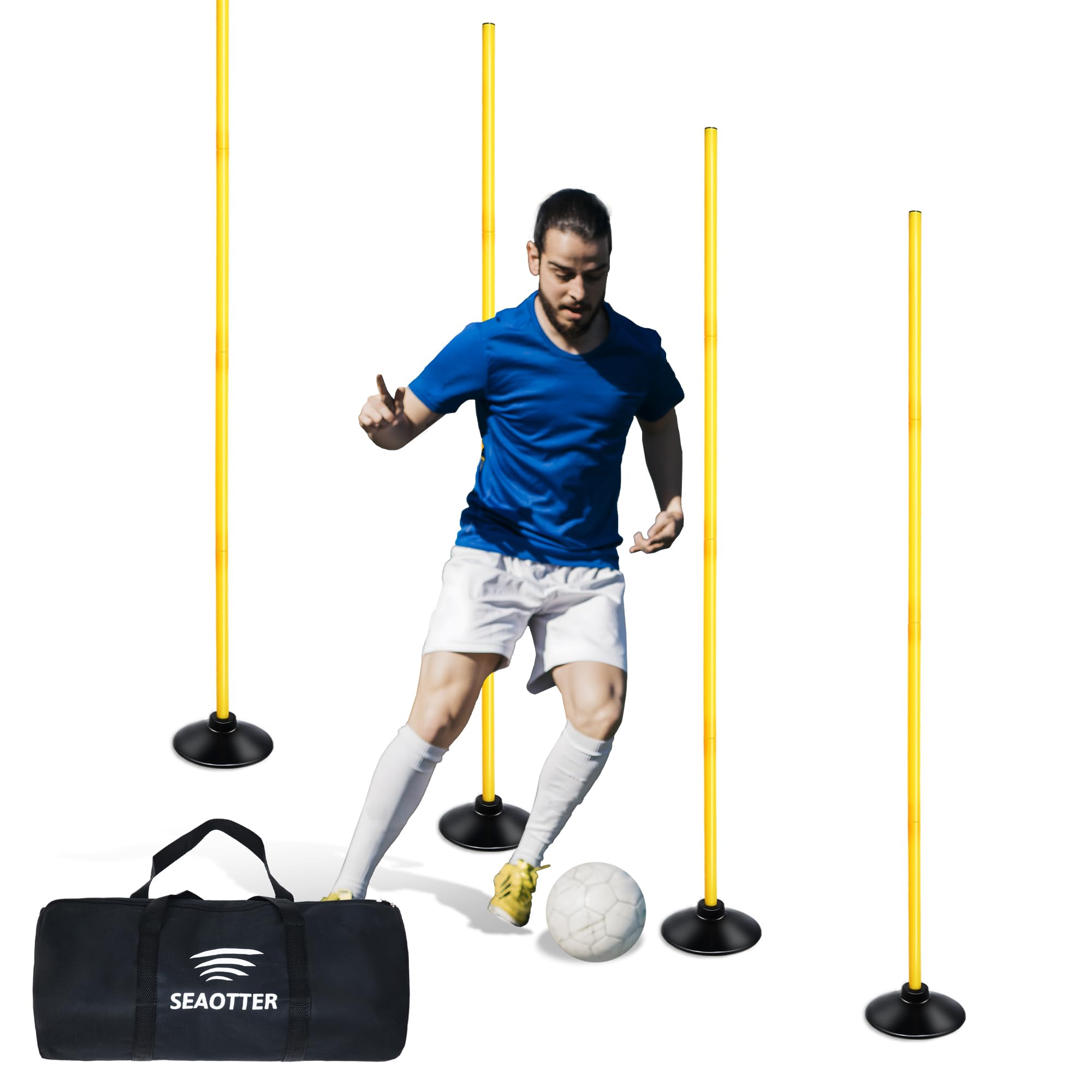 SEAOTTER Soccer Agility Poles Set, 4/6/10 Pcs 6ft Detachable Sports Trainning Speed Poles Slalom Poles with Rubber Base, Agility Training Equipment for Football, Rugby, Basketball, Indoor & Outdoor