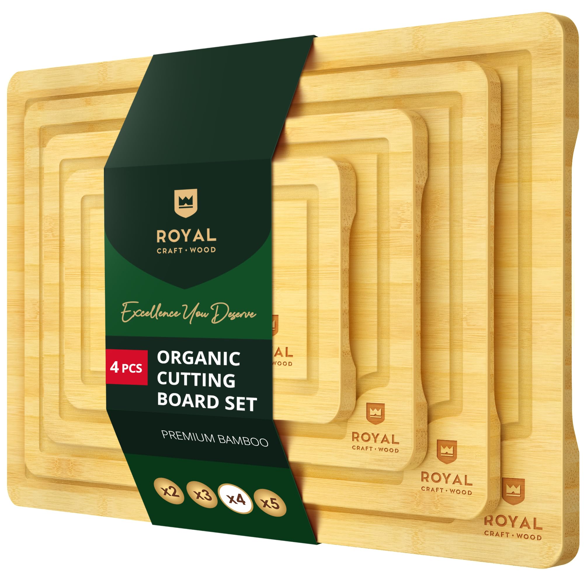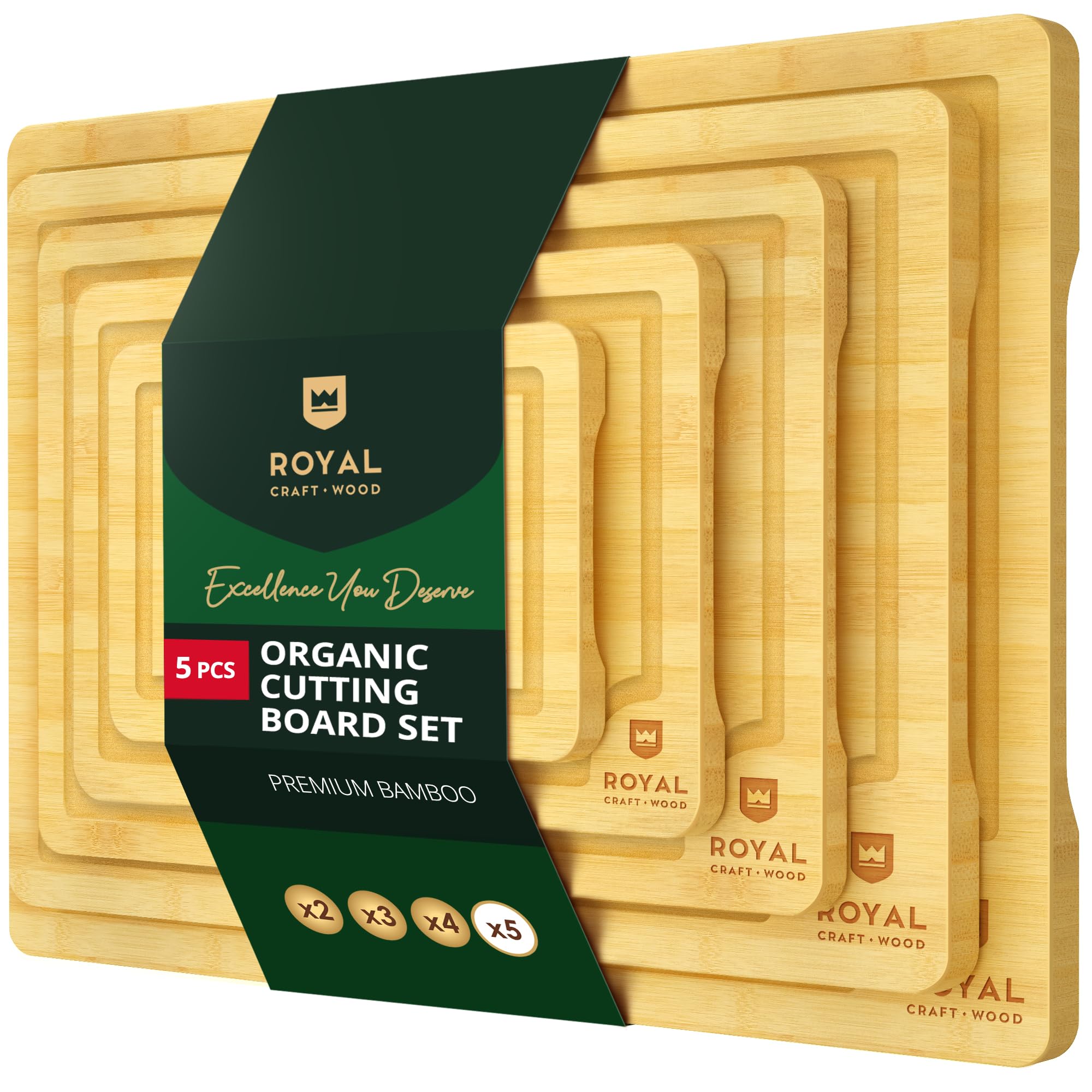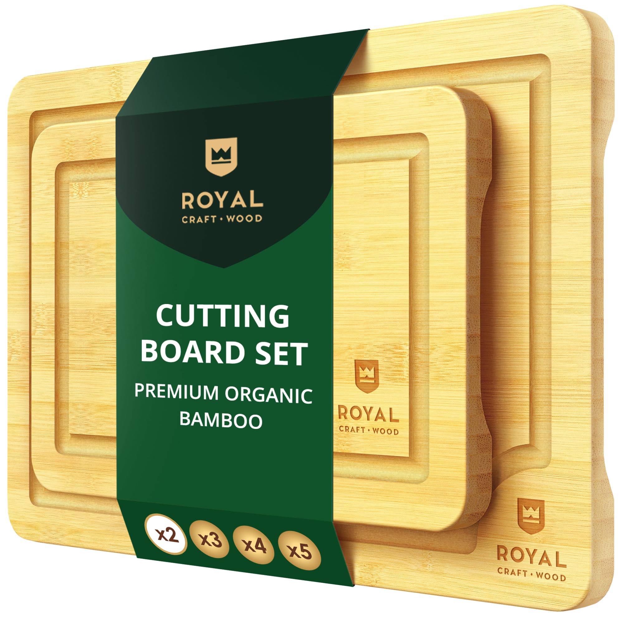 ROYAL CRAFT WOOD Wooden Cutting Boards for Kitchen Meal Prep & Serving - Bamboo Wood Serving Board Set with Deep Juice Groove Side Handles - Charcuterie & Chopping Butcher Block for Meat (3 Pcs)