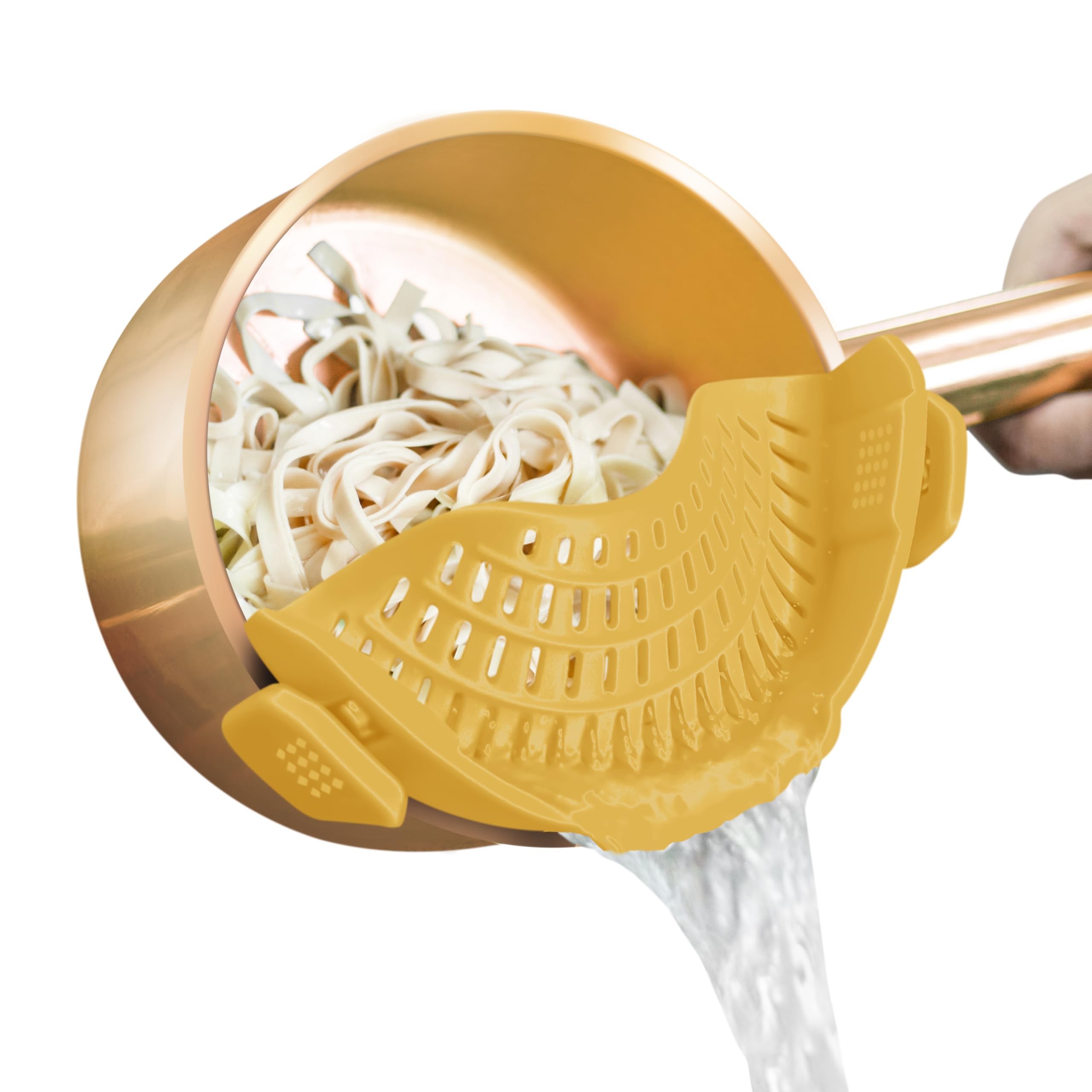 AUOON Clip On Strainer Silicone for All Pots and Pans, Pasta Strainer Clip on Food Strainer for Meat Vegetables Fruit Silicone Kitchen Colander