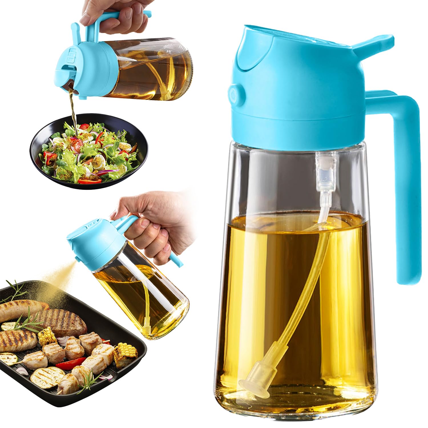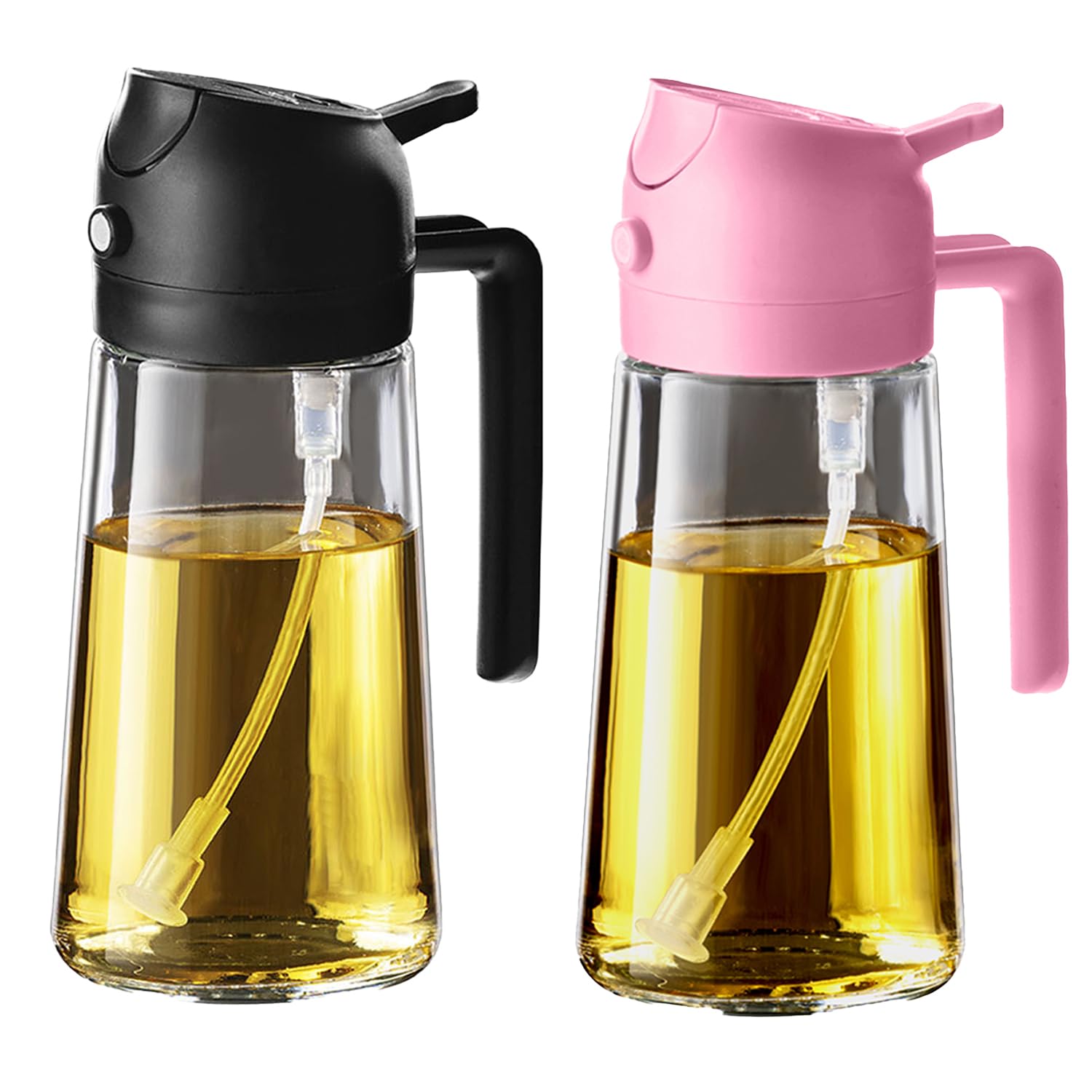 TrendPlain 16oz/470ml Glass Olive Oil Sprayer for Cooking - 2 in 1 Olive Oil Dispenser for Kitchen Gadgets, Air Fryer, Salad, and BBQ - Black