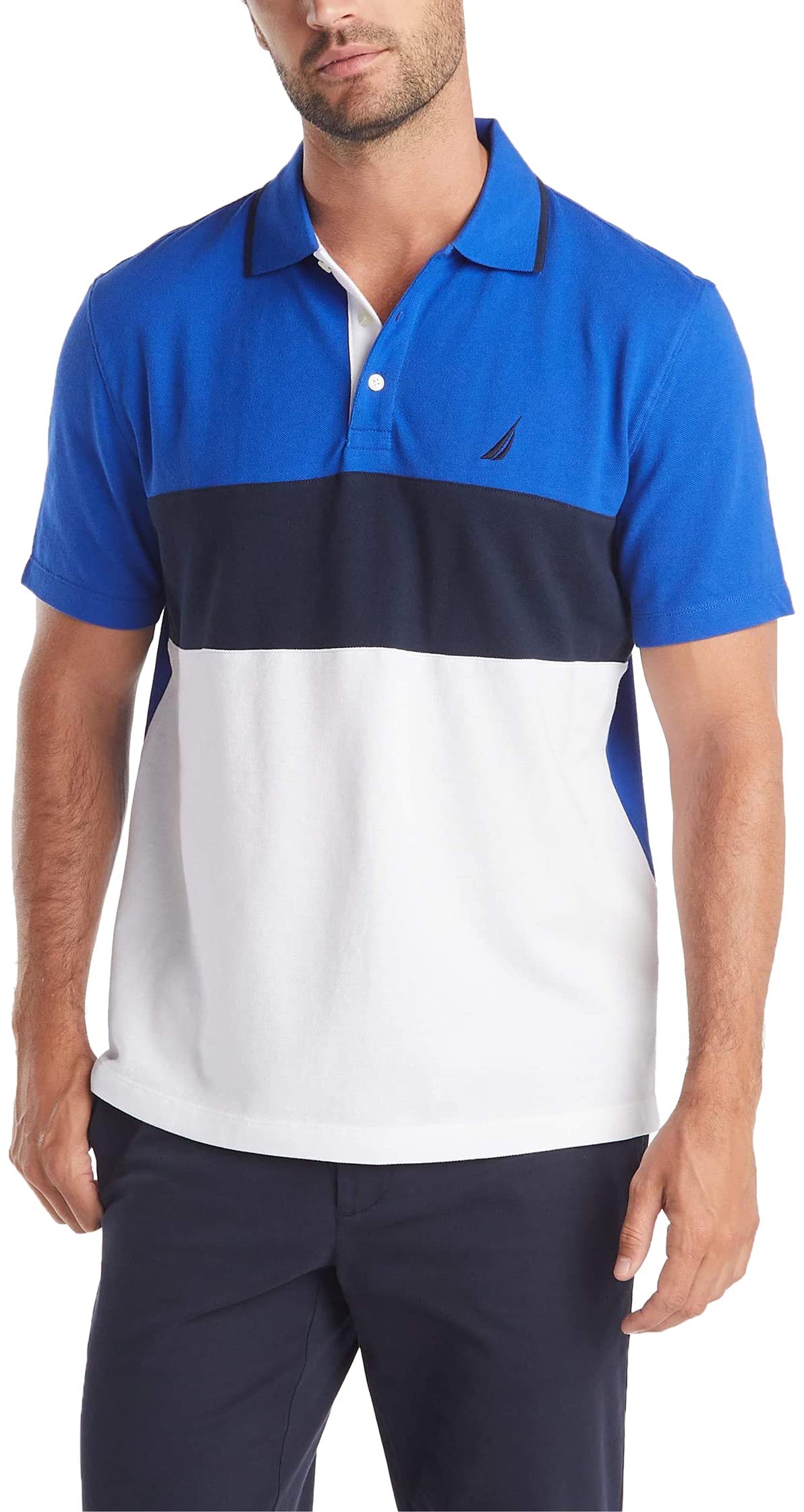 Nautica Men's Short Sleeve 100% Cotton Pique Color Block Polo Shirt