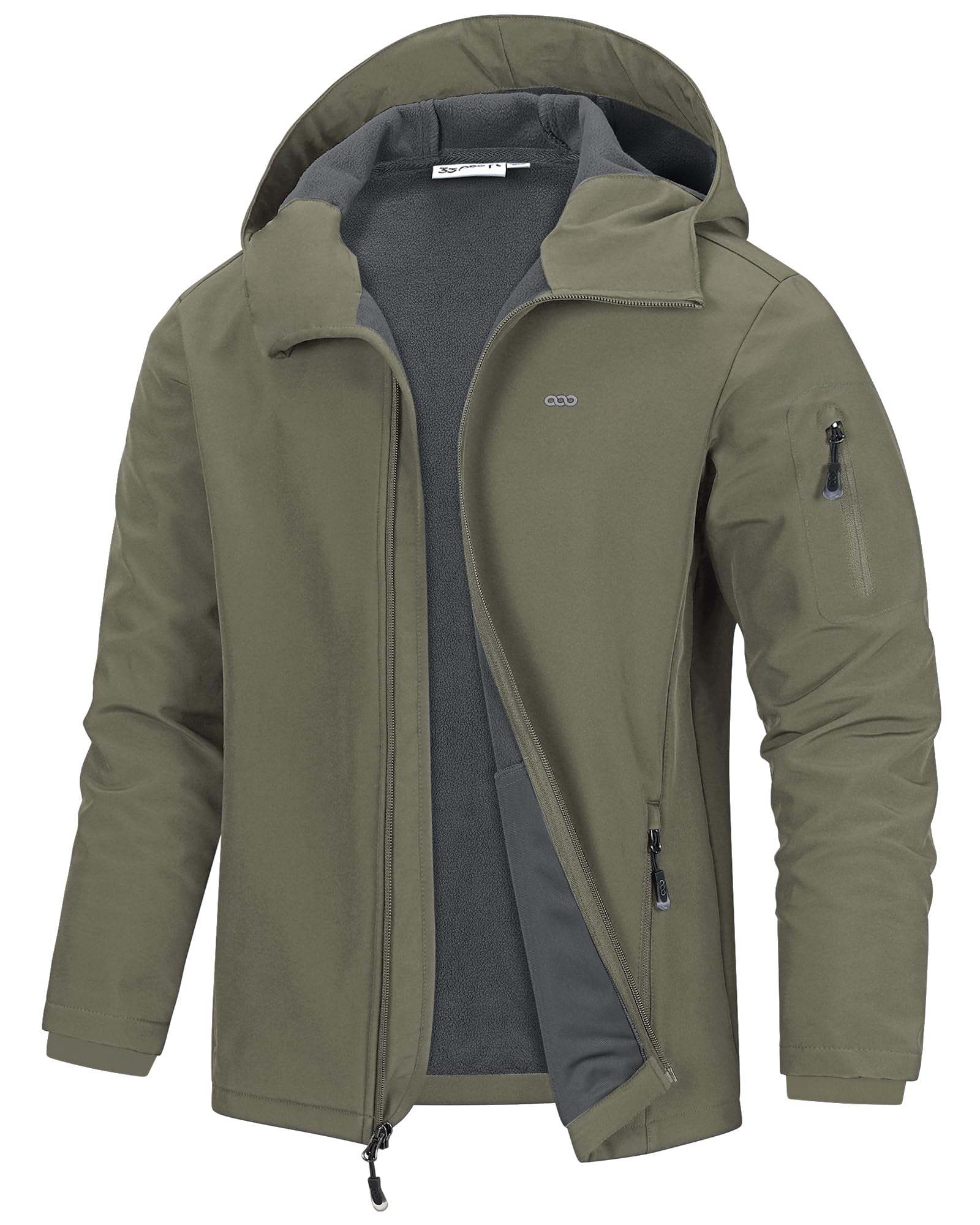 33,000ft Men's Hooded Softshell Jacket Waterproof Lightweight Insulated Windbreaker Fleece Lined Rain Shell Jacket