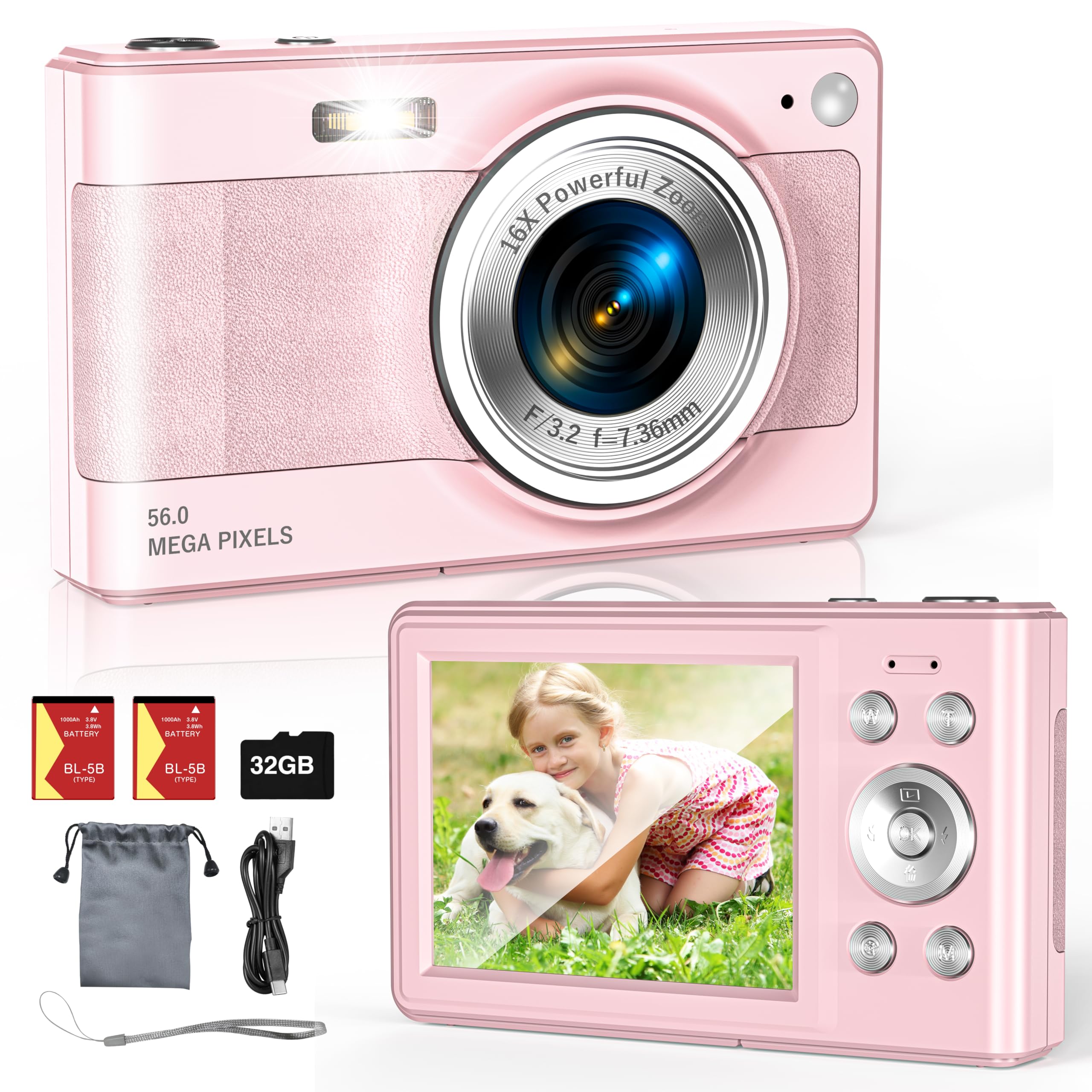 Upgrade Digital Camera, 56MP FHD 1080P Camera for Kids with 16x Zoom Anti Shake, Kid Camera with 32GB TF Card, Two Batteries, Lanyard, Compact Small for Kids Boys Girls(Black)
