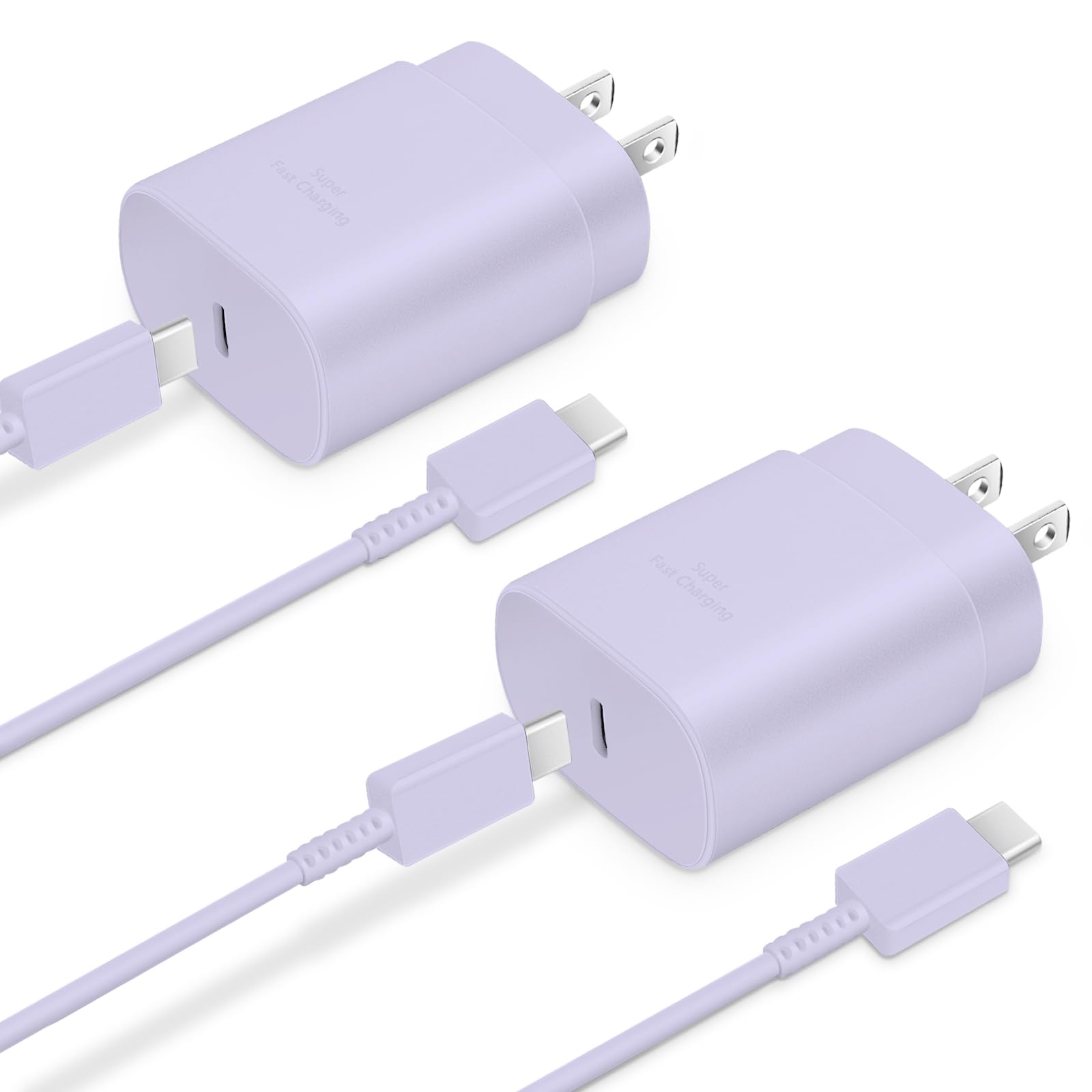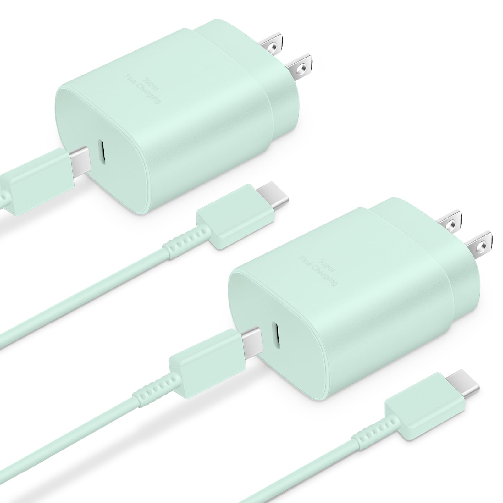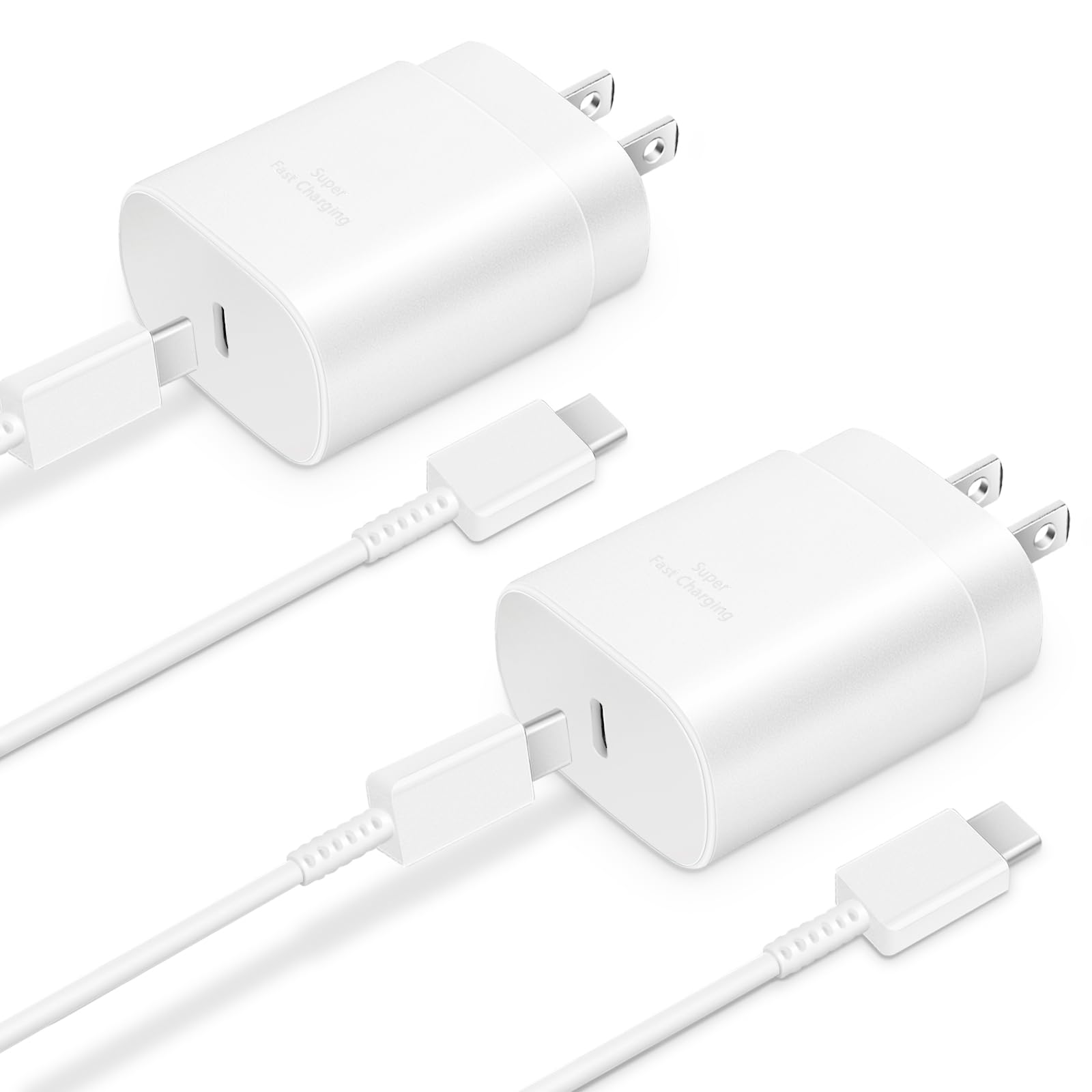 Type C Charger, 2-Pack 25W Type C Fast Charging Block with 6ft USB C Charger Cable Compatible with Galaxy S23 Ultra/S23+/S22/S21/S20/Phone 16/16 Plus/16 Pro Max/15/15 Pro Max/15 Plus-Black