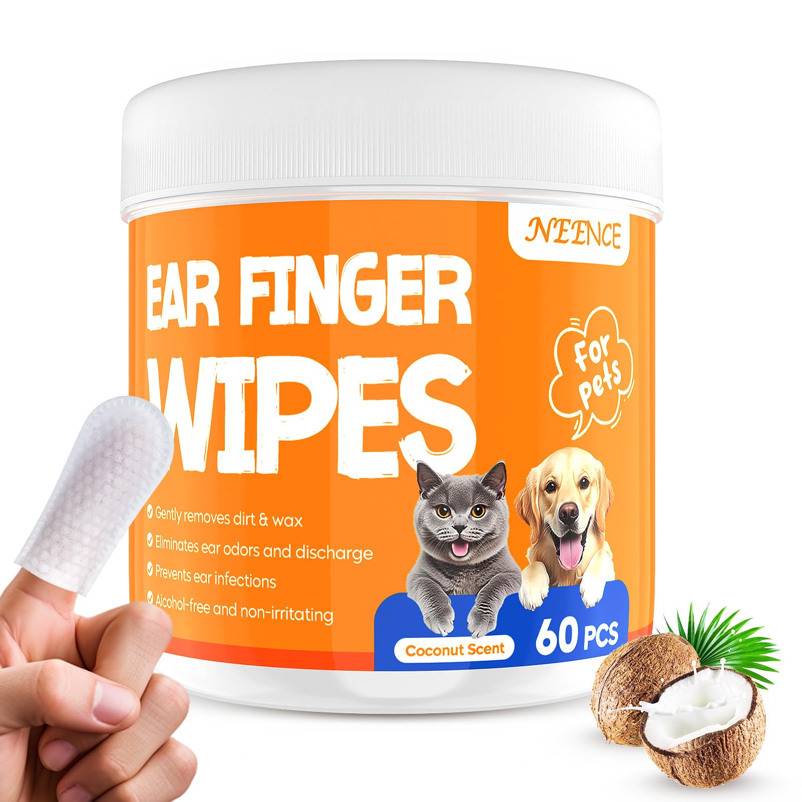 NEENCE Ear Finger Wipes for Dogs & Cats,Dog Ear Cleaner Finger Wipes, Soothing Cleansing Deodorizing Ear Care Wipes for Cat and Dog, Effectively Remove Ear Wax for Dogs & Cats(60 Pcs, Unscented)