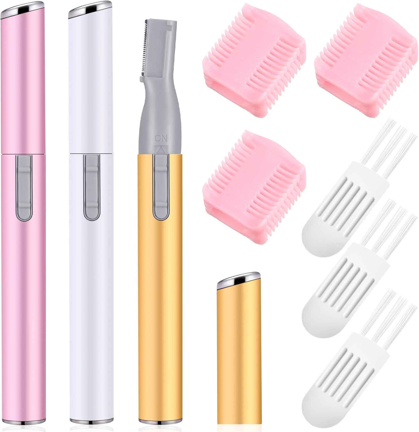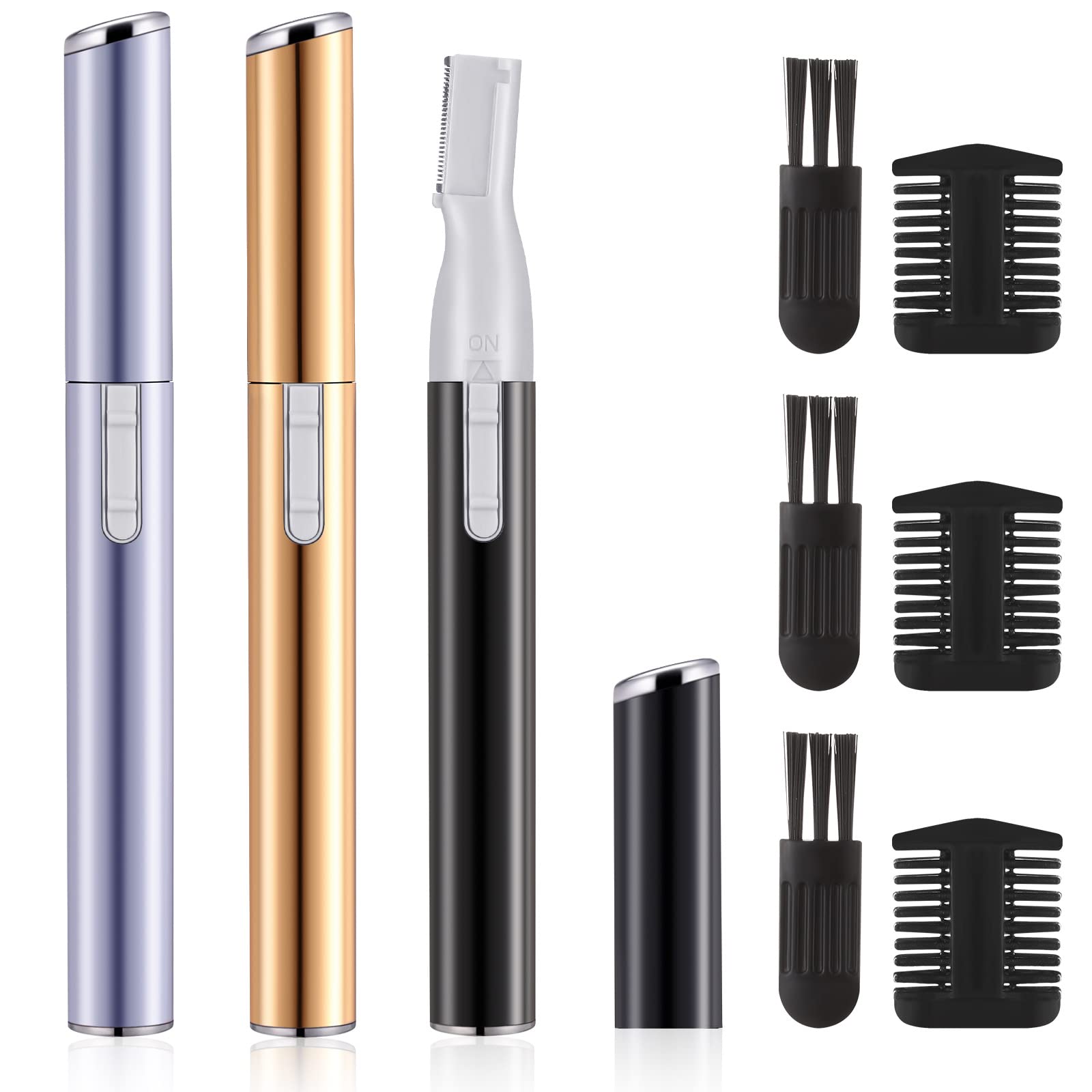 Landhoow 3 Pcs Electric Eyebrow Trimmer Women Precision Eyebrow Hair Trimmers with Comb Christmas Women Gift, Battery Operated Personal Epilator for Face Lips Leg Neck Fuzz (White, Gold, Pink)