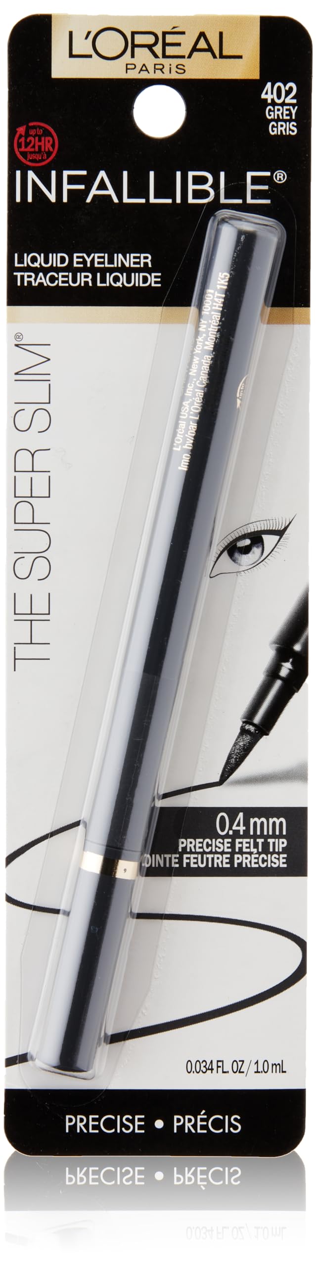 L'Oreal Paris Makeup Infallible Super Slim Long-Lasting Liquid Eyeliner, Ultra-Fine Felt Tip, Quick Drying Formula, Glides on Smoothly, Black, Pack of 1
