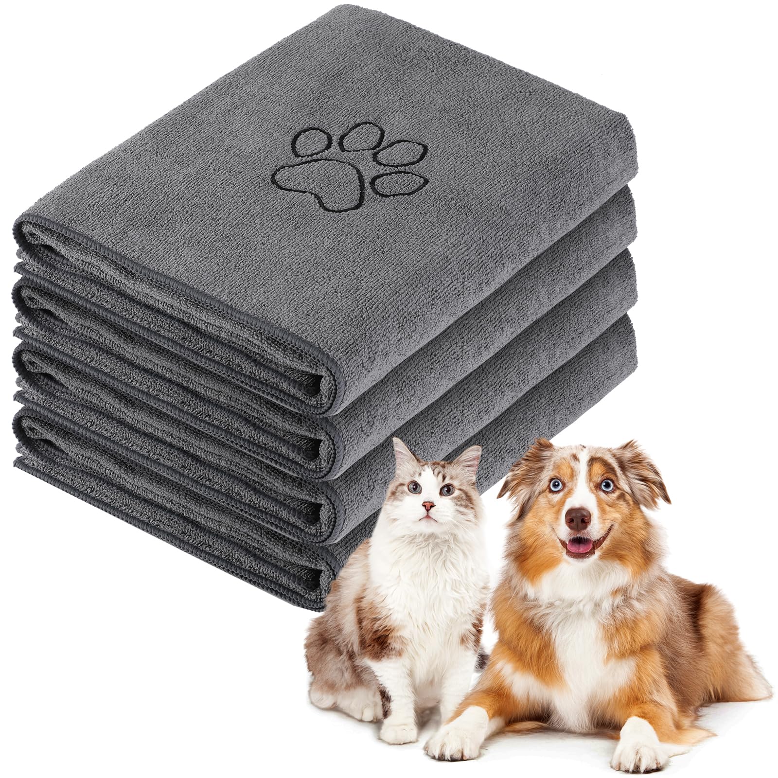 Chumia 4 Pack Dog Towels for Drying Large Microfiber Grooming Tools Absorbent Soft Bath Supplies with Embroidered Paw for Small Medium Pet Products(16 x 32 Inch,Blue)