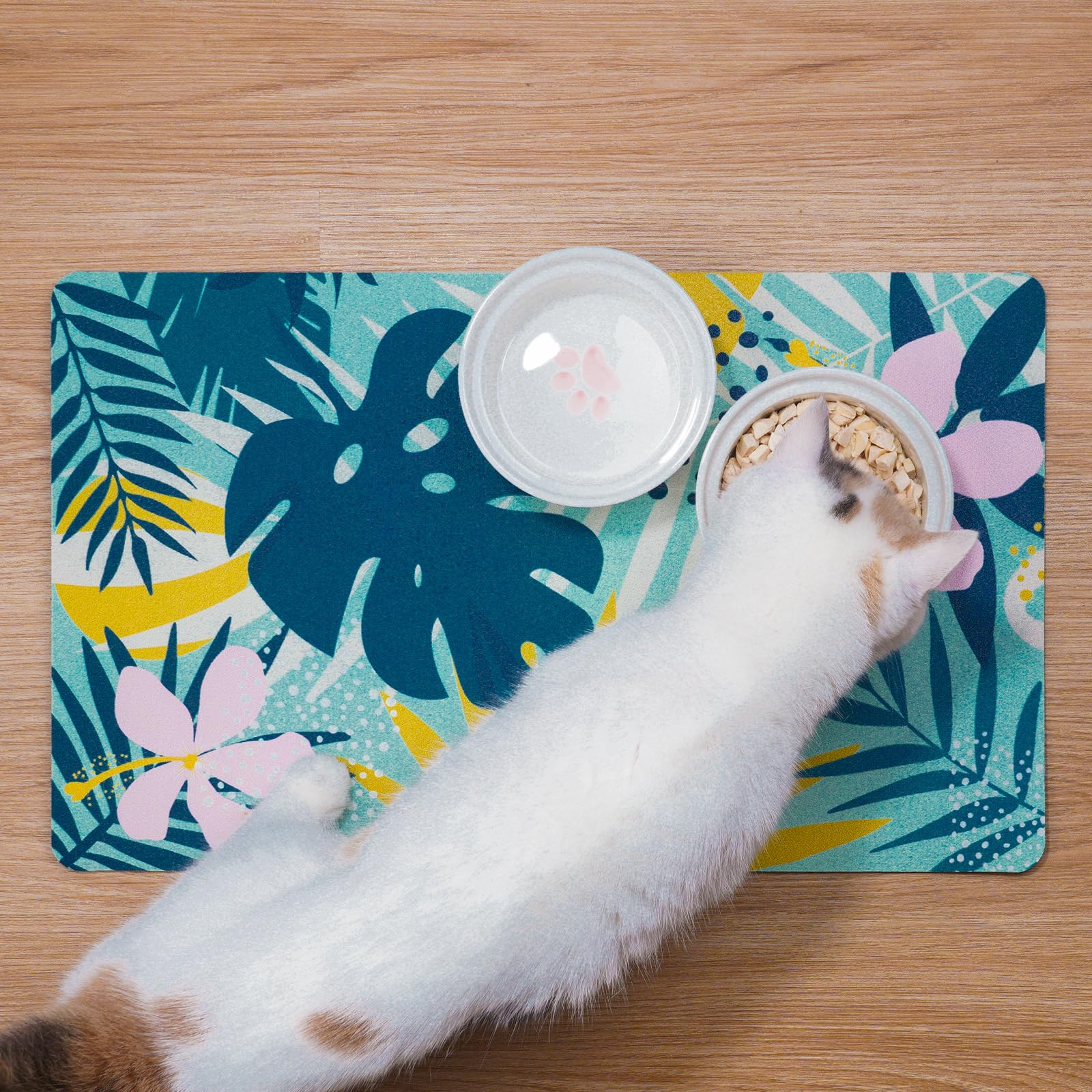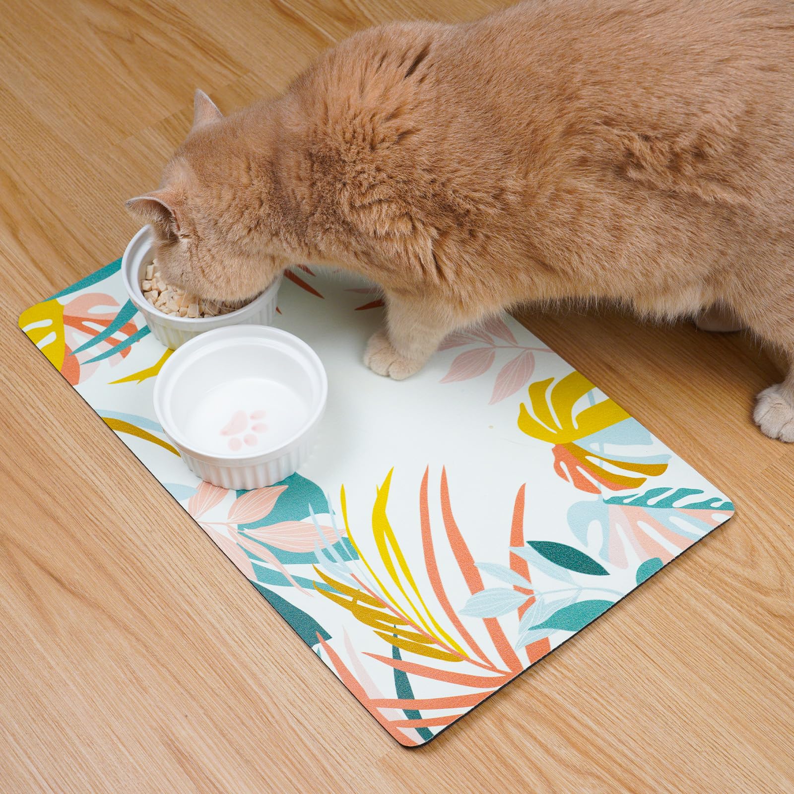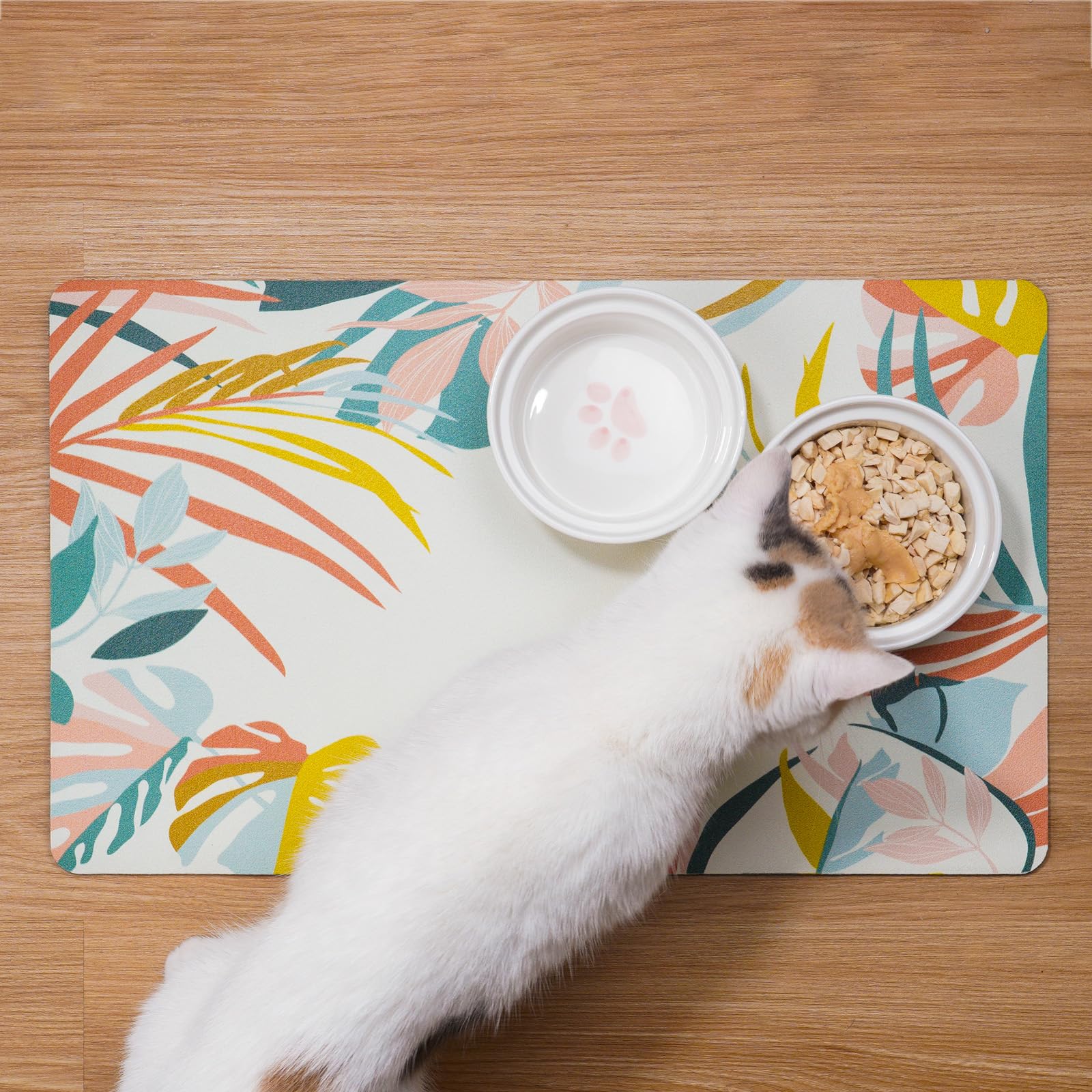 Absorbent Pet Feeding Mat for Food and Water No Stains Quick Dry Mat for Dog Cat Bowl, Dark Paw12x19 Inches