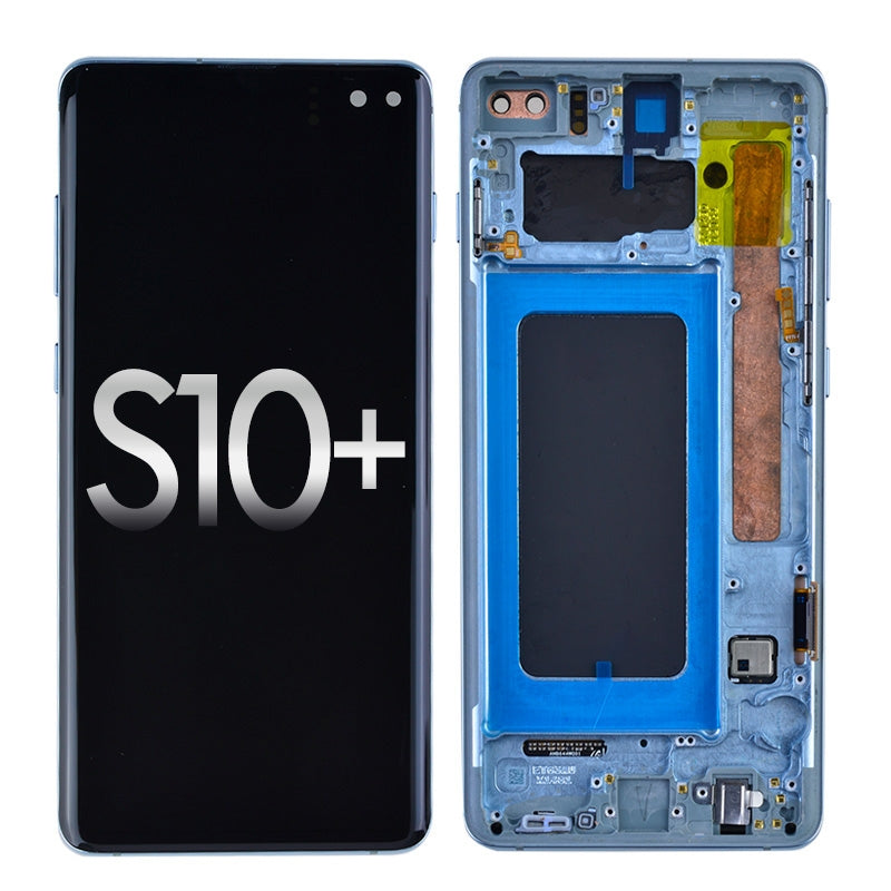 OLED Screen Digitizer with Frame Replacement for Samsung Galaxy S10 Plus G975 (Premium) - Prism Blue