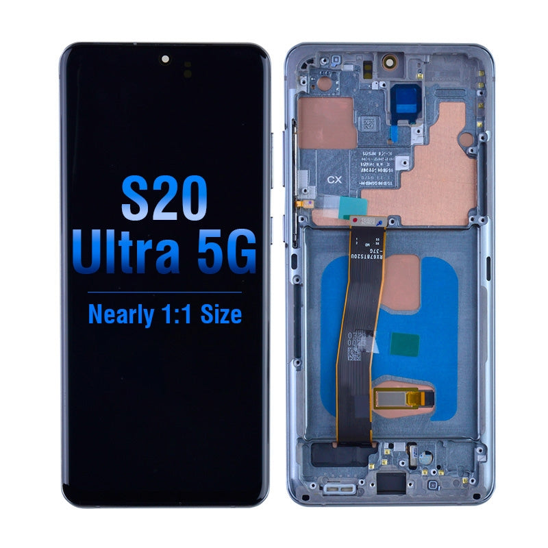 OLED Screen Digitizer with Frame Replacement for Samsung Galaxy S20 Ultra 5G G988U (Aftermarket)(Nearly 1:1 size) - Cosmic Gray