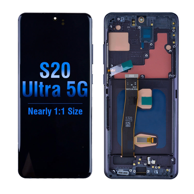 OLED Screen Digitizer with Frame Replacement for Samsung Galaxy S20 Ultra 5G G988U (Aftermarket)(Nearly 1:1 size) - Cosmic Black