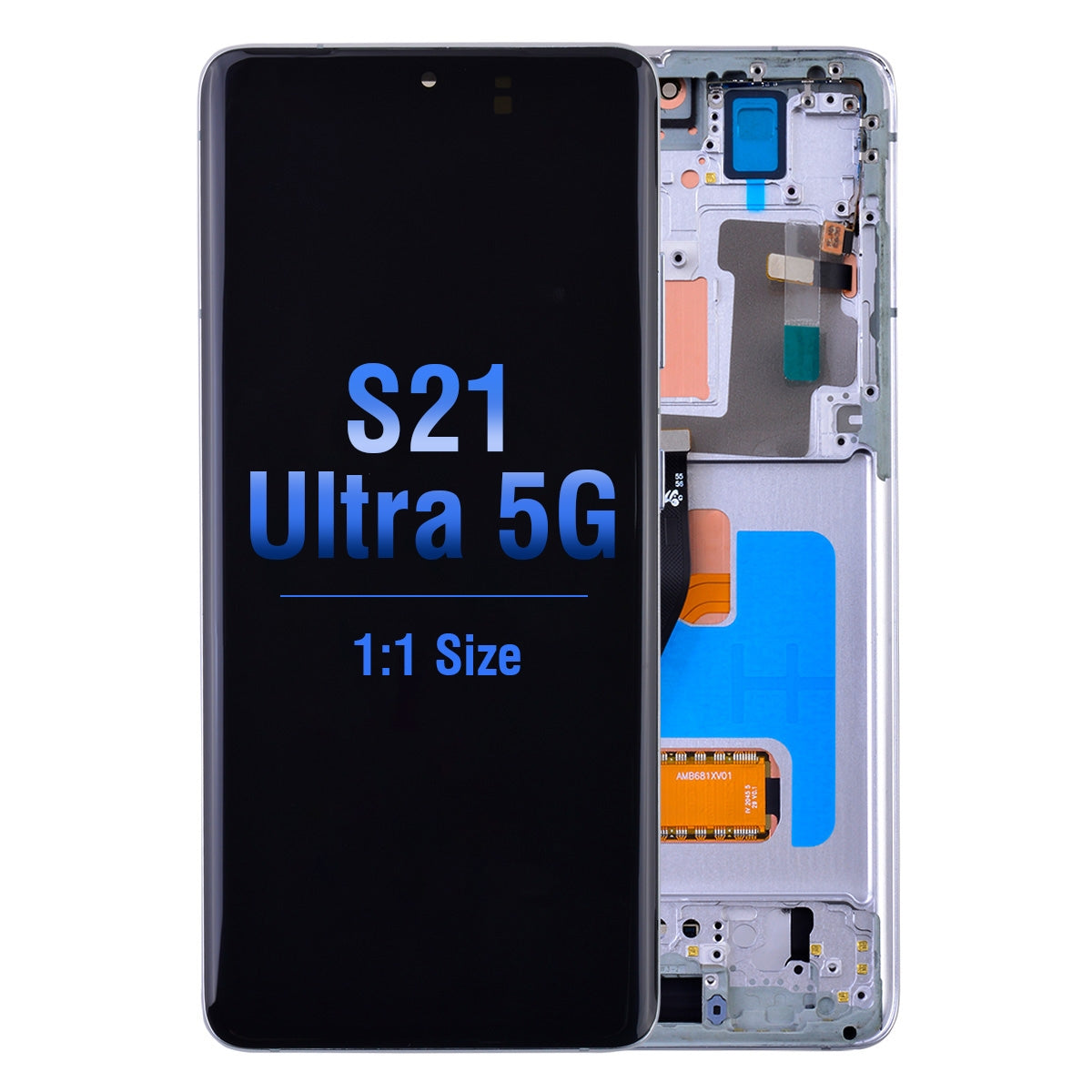 OLED Screen Digitizer with Frame Replacement for Samsung GalaxyS21 Ultra 5G G998 (Aftermarket Plus)(1:1 size) - Phantom Silver