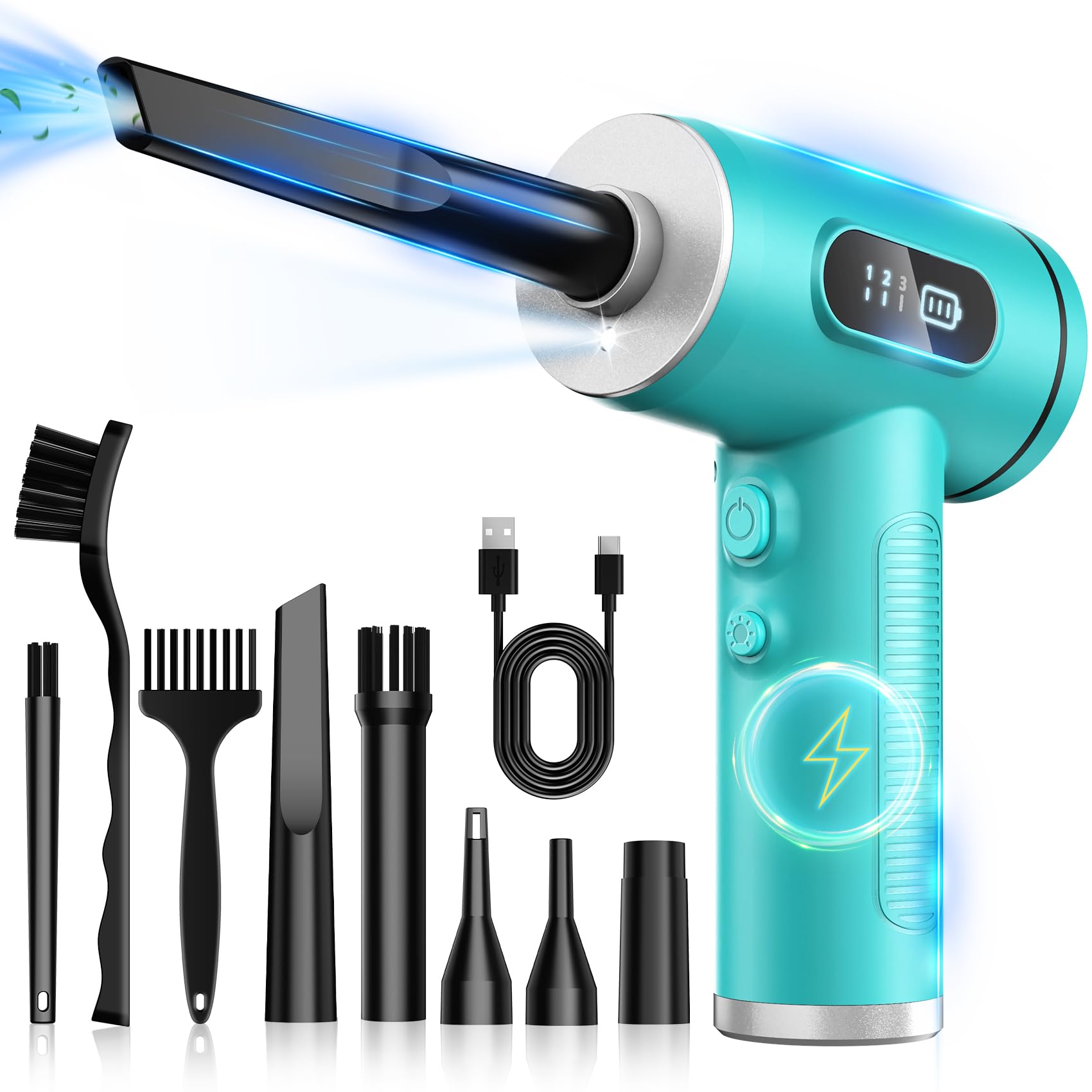 Compressed Air Duster-3 Gear Adjustable 100000RPM Electric Air Duster with LED Light, Rechargeable Cordless Air Blower for Keyboard Electric Devices Cleaning. Replaces Compressed Air Cans (Black)