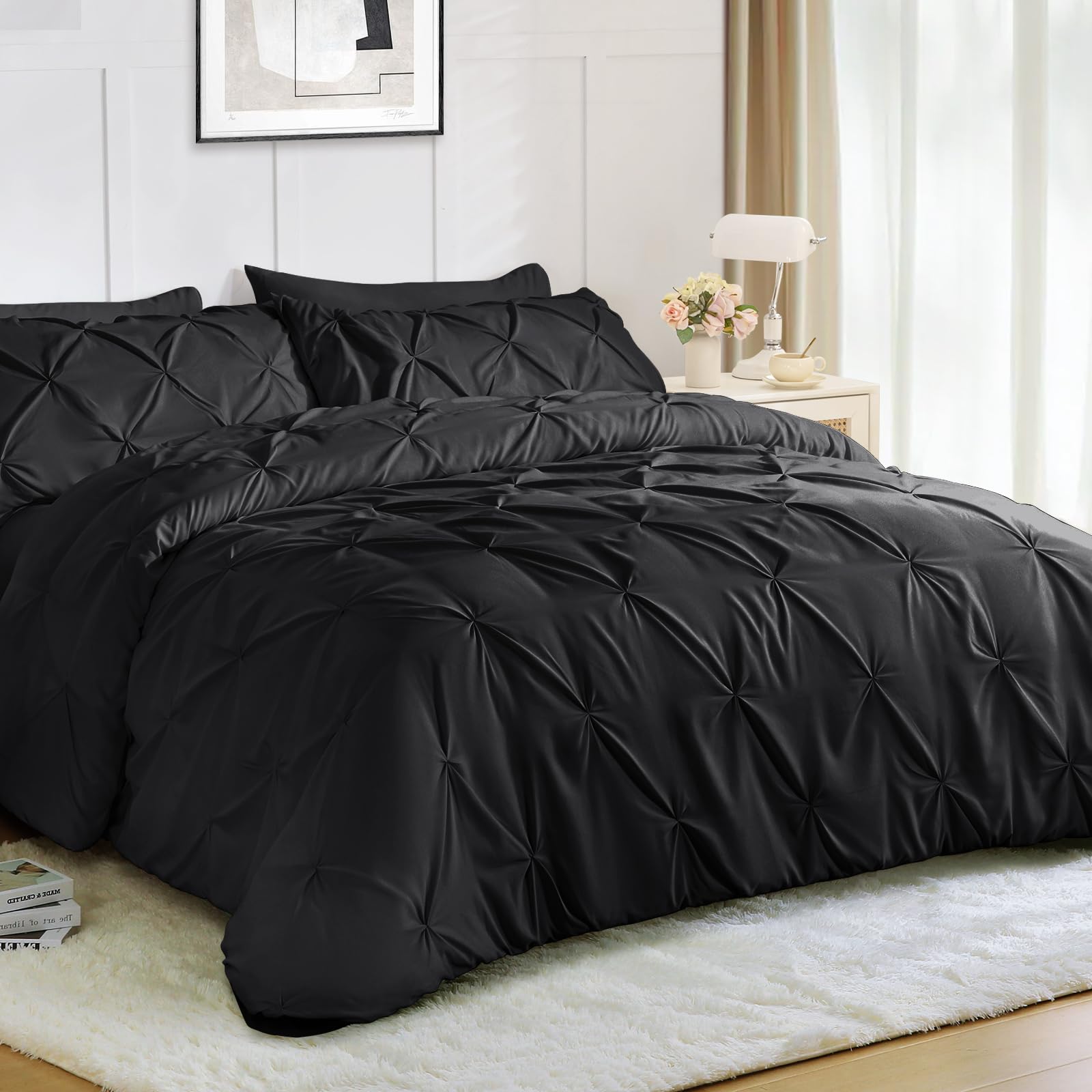 Product Overview Size: Queen Included Components: Color: Black Style: Modern Brand: JOLLYVOGUE Product Features CHIC PINTUCK DESIGN: Our queen size...