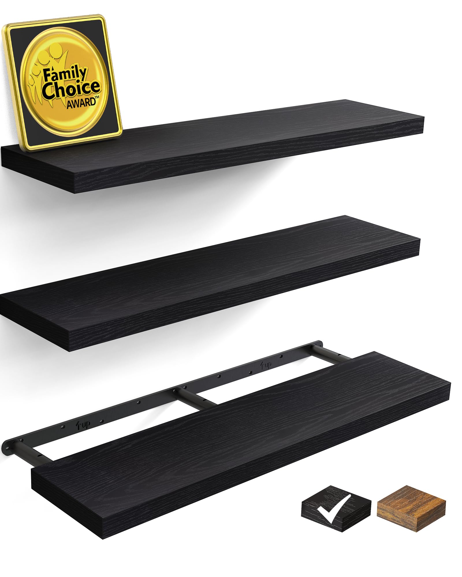 BAYKA Floating Shelves for Wall, Wall Mounted Rustic Wood Shelves for Bathroom, Bedroom, Living Room, Kitchen, Hanging Shelf for Books/Storage/Room Decor with 22lbs Capacity (Black, Set of 3, 15.7in)