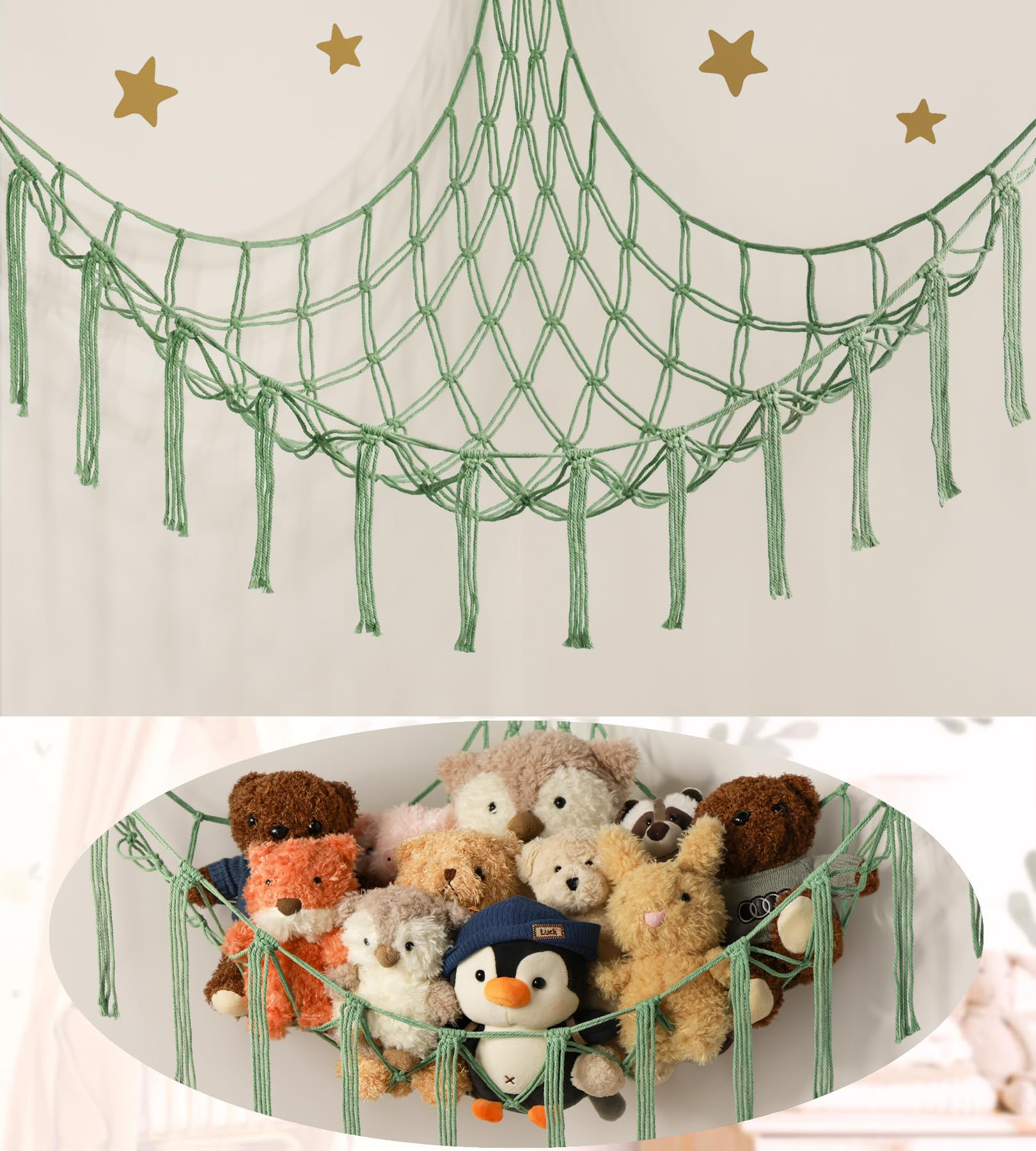 Stuffed Animal Storage Hammock or Net Corner - Large Toy Hammock Net for Stuffed Animals Room Decor - Cute Stuff Animal Organizer Plush Holder - Kids Baby Nursery Essentials Wall Bedroom Home Decor