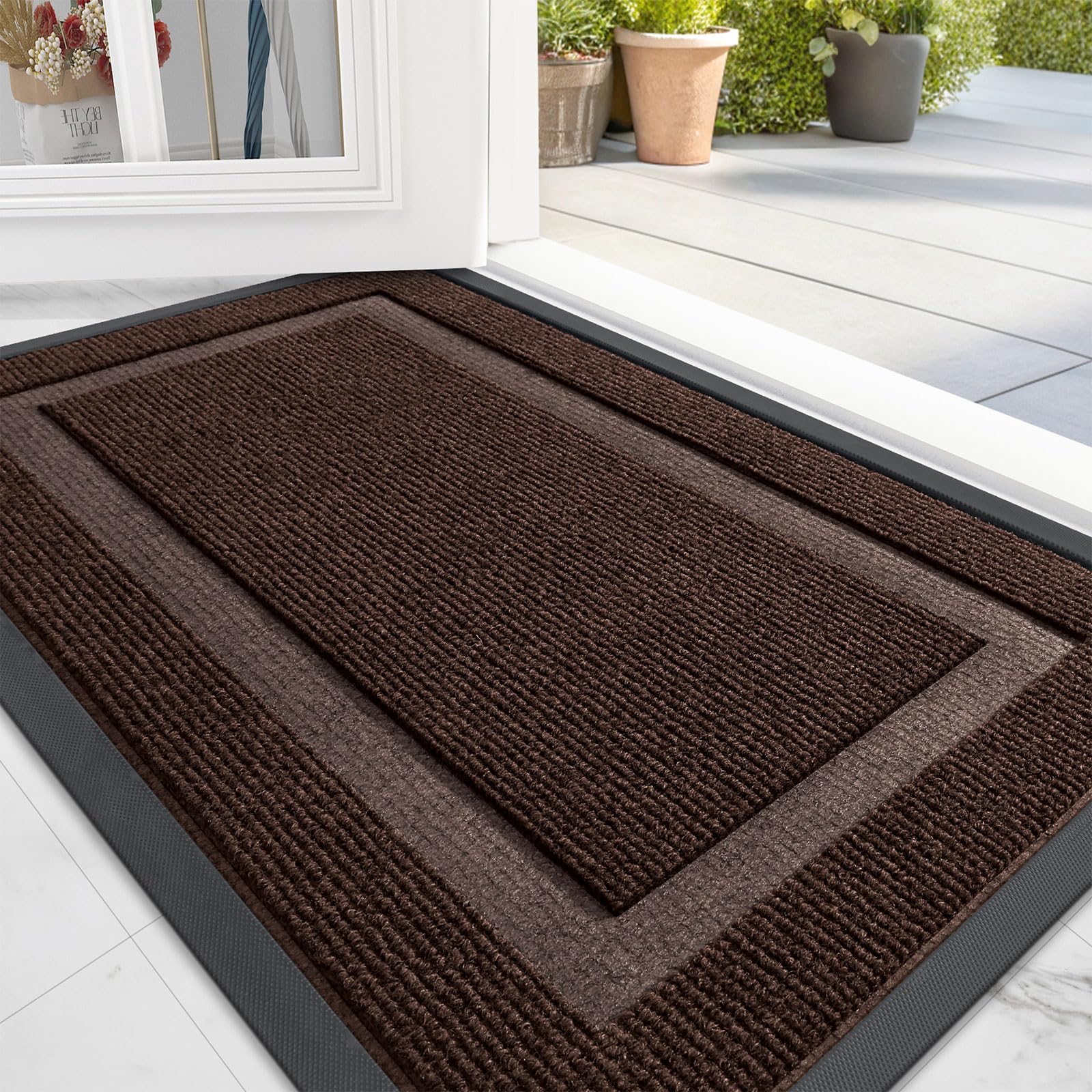 OLANLY Front Door Mat Indoor Outdoor Entrance, Waterproof All-Season, All-Weather Doormat, Sturdy Natural Rubber, Fade Resistant, Low Profile, Easy Clean Patio Porch Entryway Mat, 29.5x17, Black