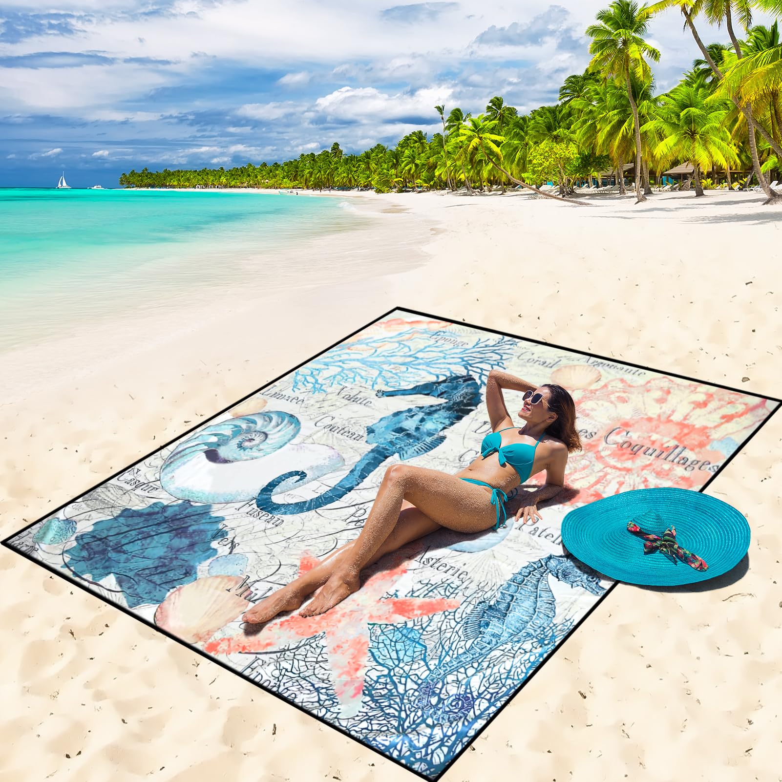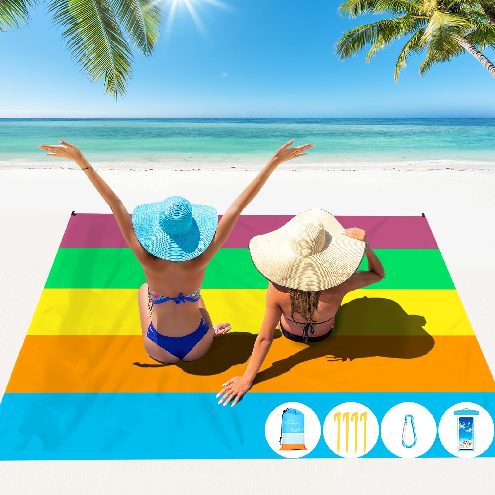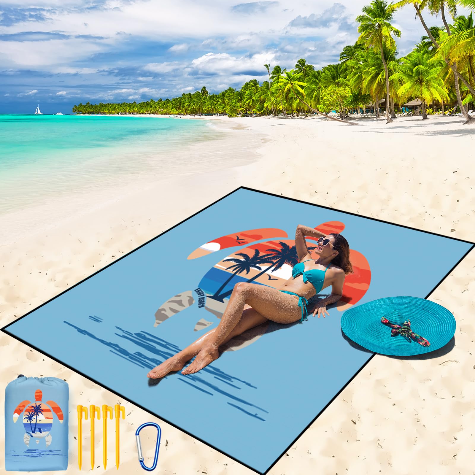 Beach Blanket Oversized Extra Large 78" X 81",Waterproof Sandproof Beach Blanket 1-7 Adults Lightweight Durable for Travel Camping Hiking Picnic