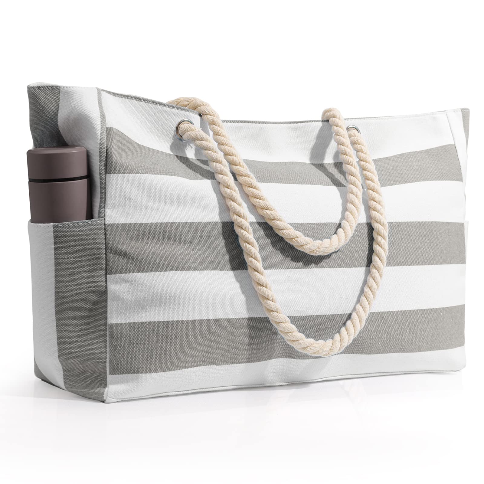 Beach Bag for Women Large Waterproof Pool Bag with Zipper, Sandproof Canvas Travel Tote Bags Gifts for Women