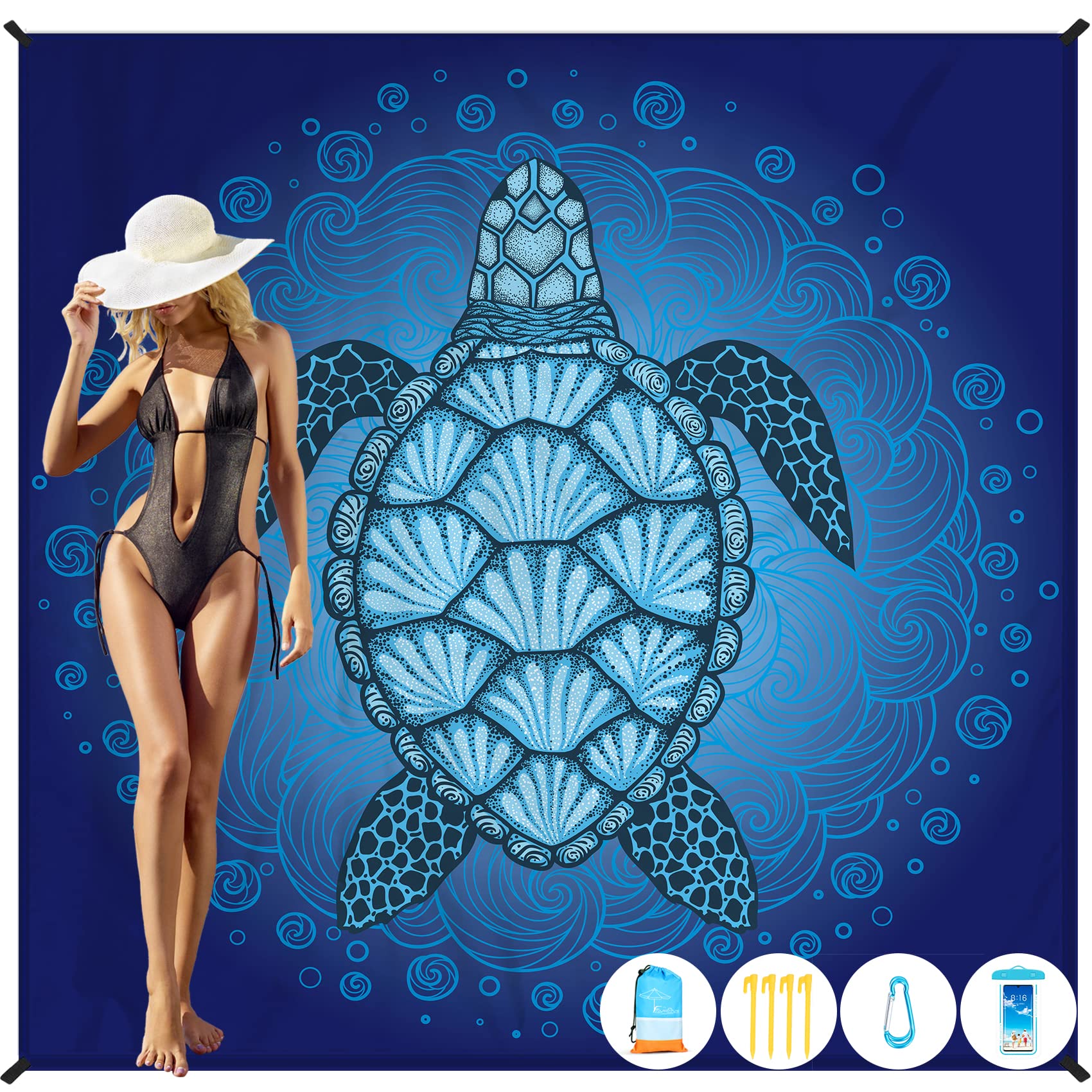 Beach Blanket Waterproof Sandproof Beach Mat 79" X 83" /10'x9'for 2-8 Adults Quick Drying Outdoor Picnic Mat Beach Accessories for Travel, Camping, Hiking