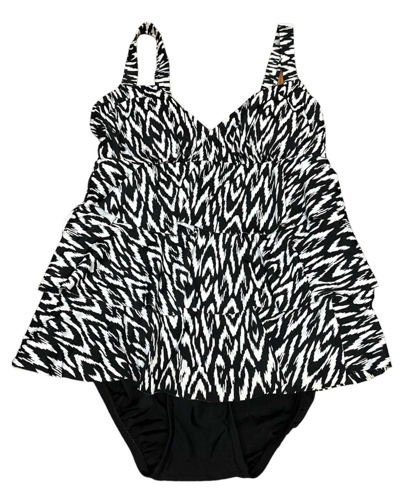 bar III Women's Tiered One-Piece Swimsuit, Black-WHITE, 8
