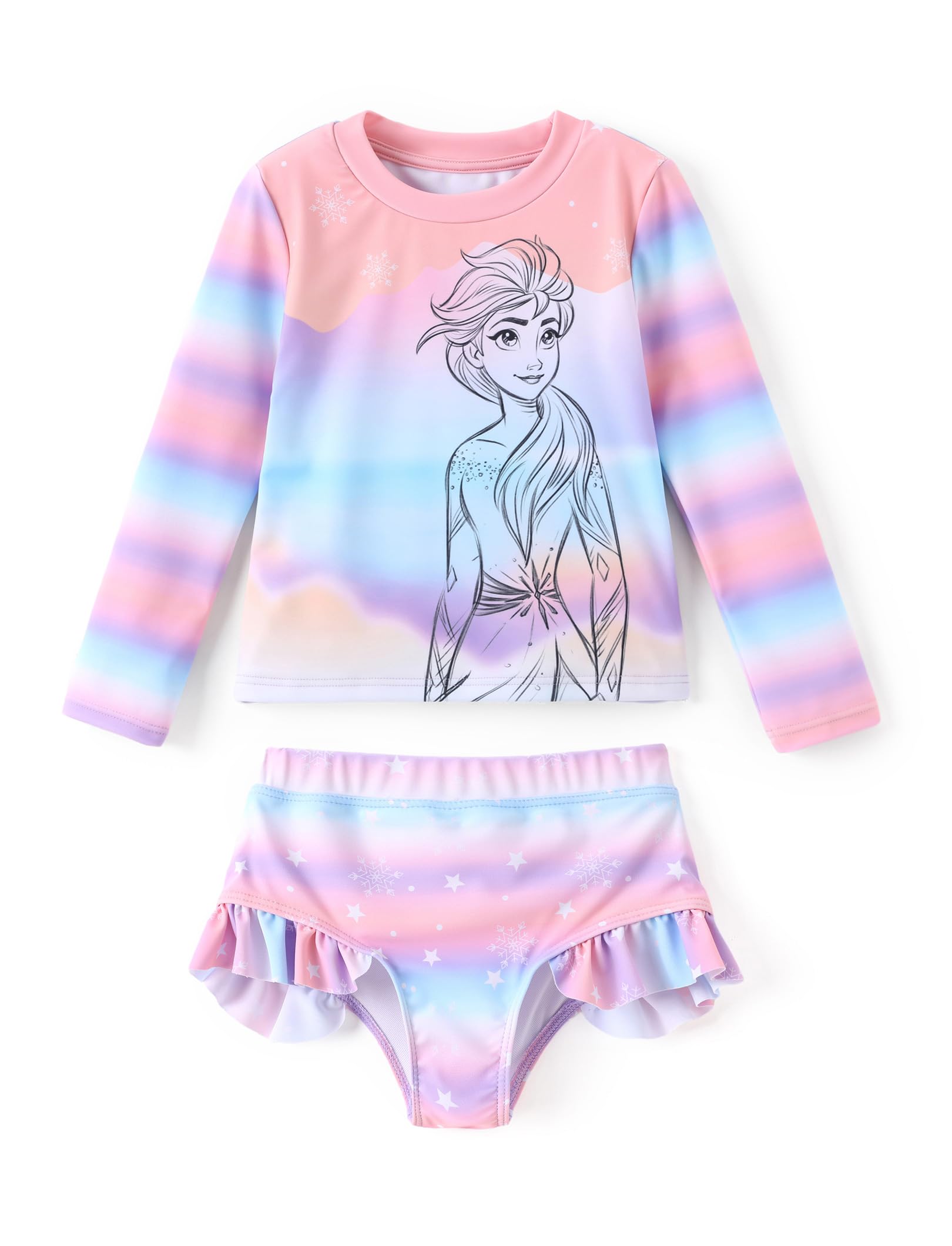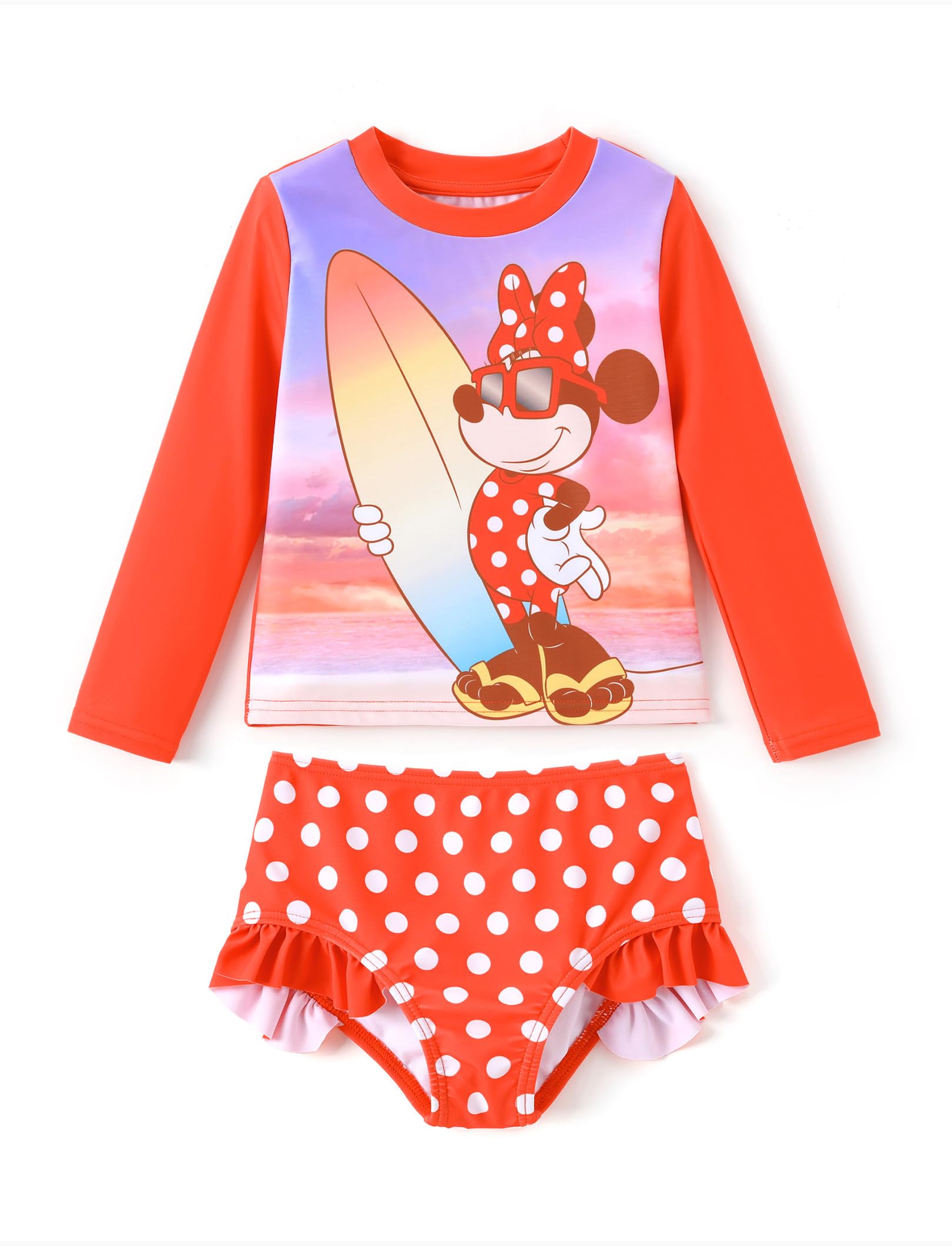 Disney Mickey and Friends Girl Two Piece Long Sleeve Swimsuit Rashguard Bathing Suit
