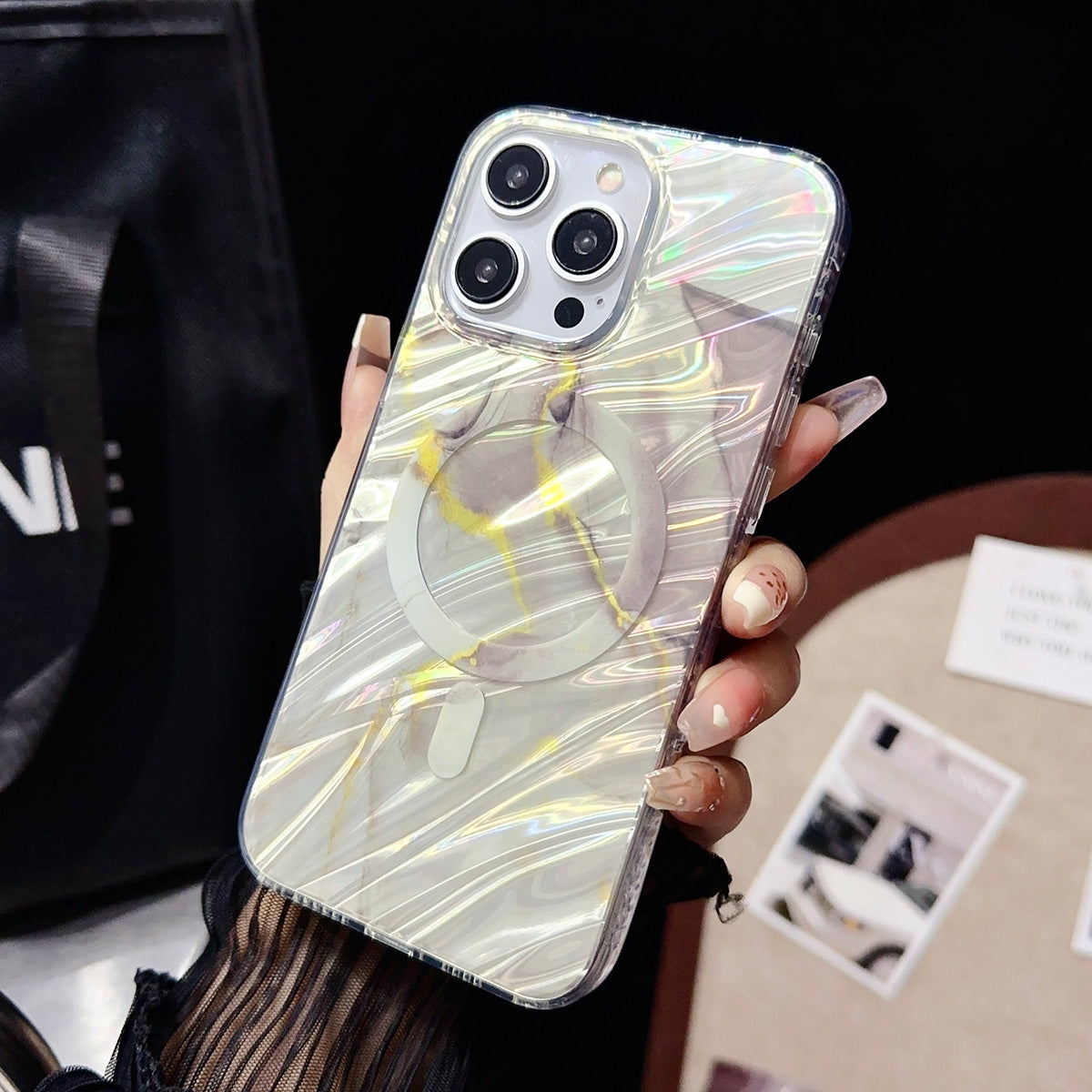 Enhanced Magnetic IMD Case with Glazed Marble Fold Pattern for iPhone 15 Pro Max - Silver
