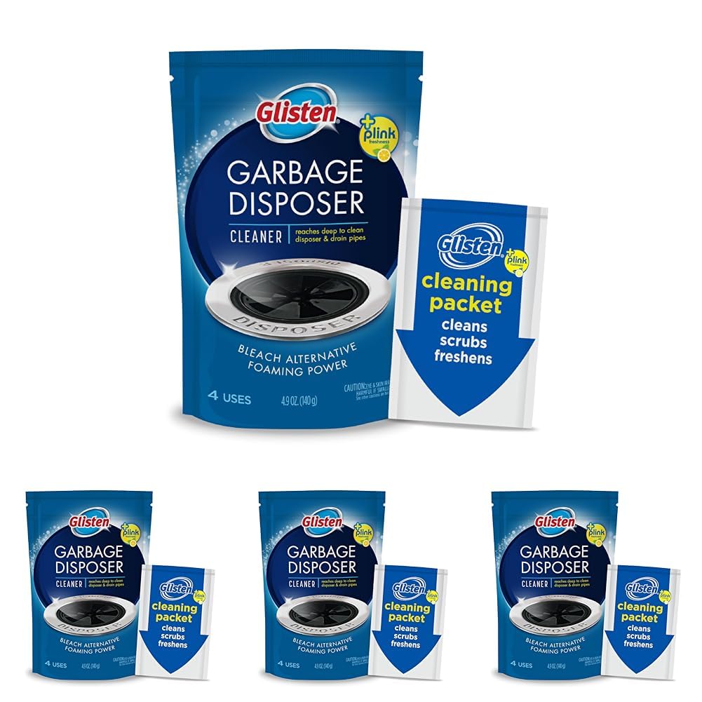 Glisten Garbage Disposer Cleaner and Freshener, Sink Disposal Odor Eliminator with Foaming Action, Lemon Scent, Made in the USA, 4 Packets