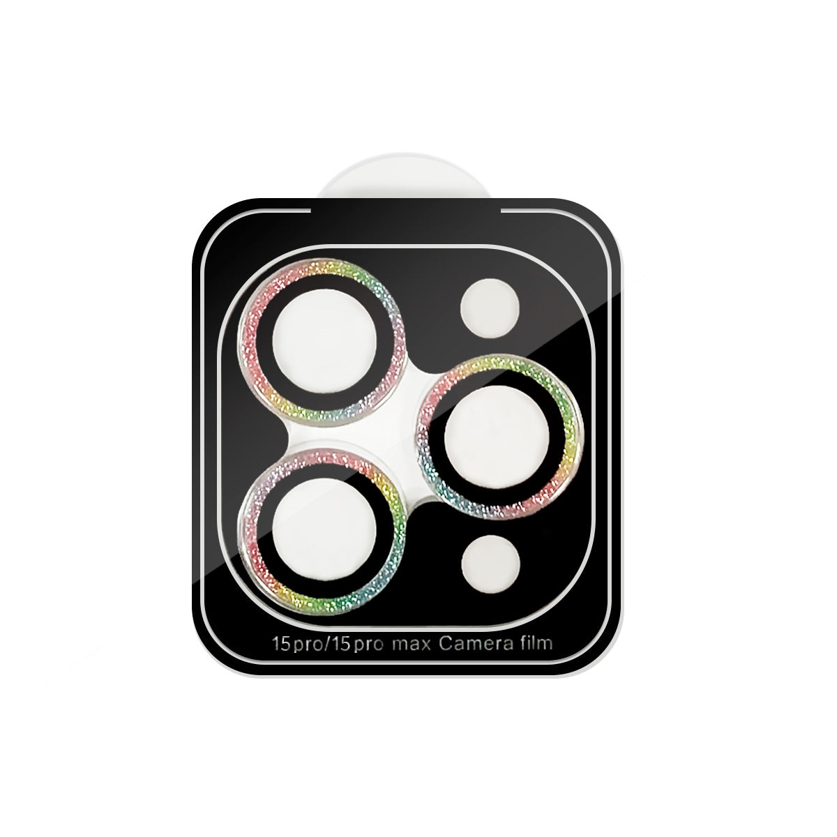 Glitter Camera Lens Tempered Glass Protector for iPhone 15 Pro/ 15 Pro Max - Colorful