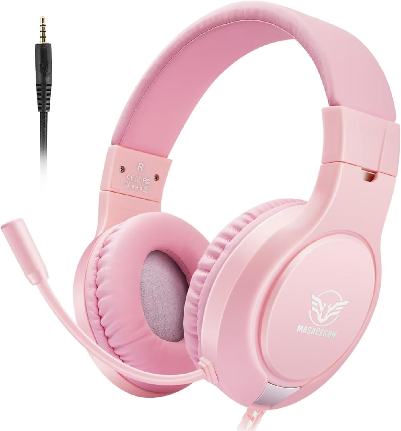 H-10 Gaming Headset for PS4, Xbox One, PC, PS5, Nintendo Switch, Stereo Wired Noise Cancelling Over Ear Headphones with Mic for Kids Adults, Bass Surround, Soft Memory Earmuffs, Pink