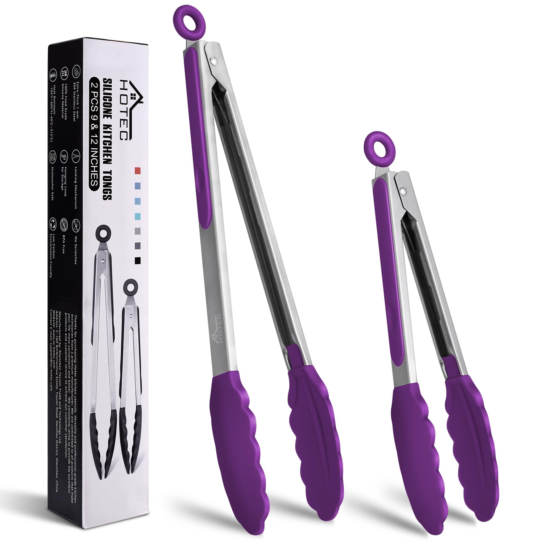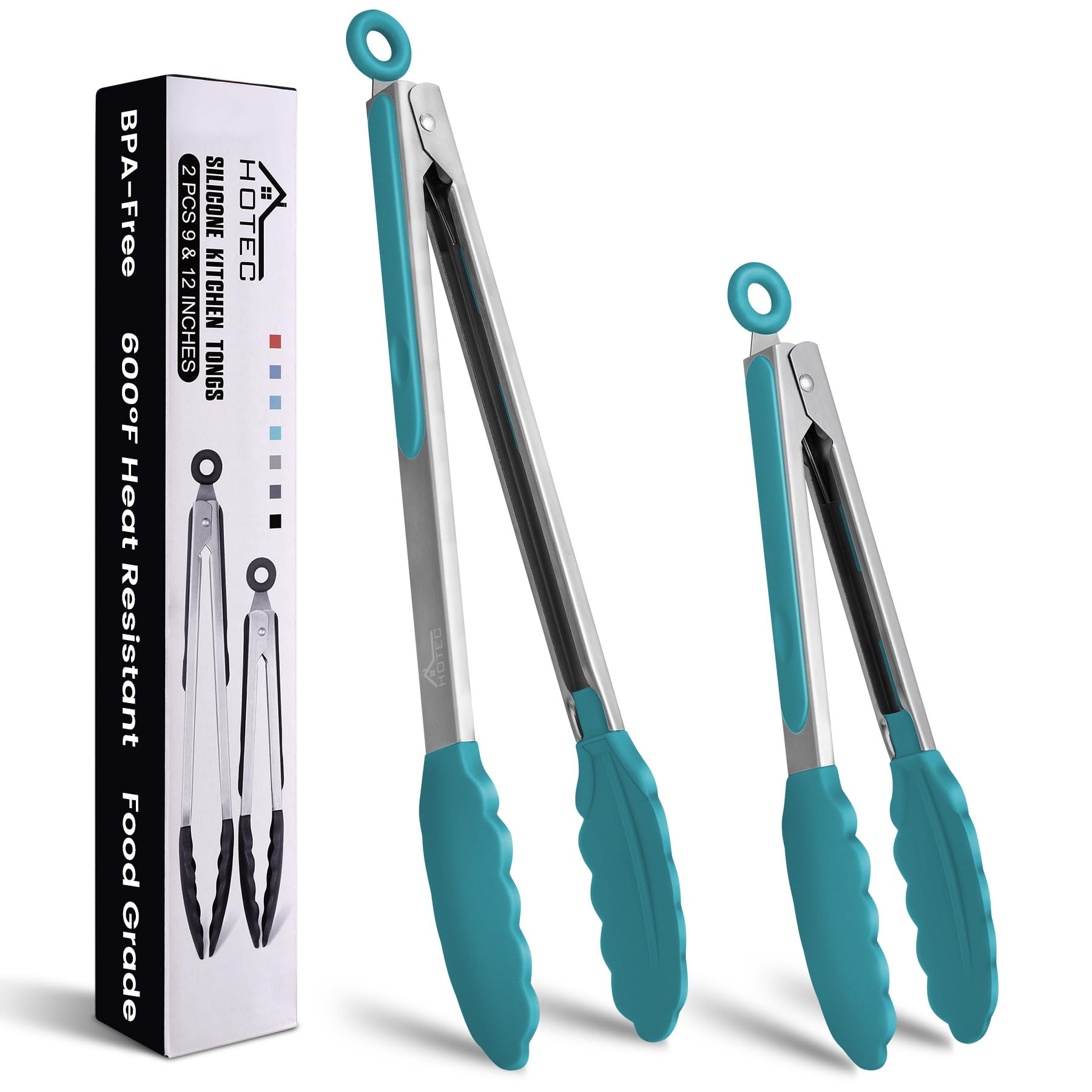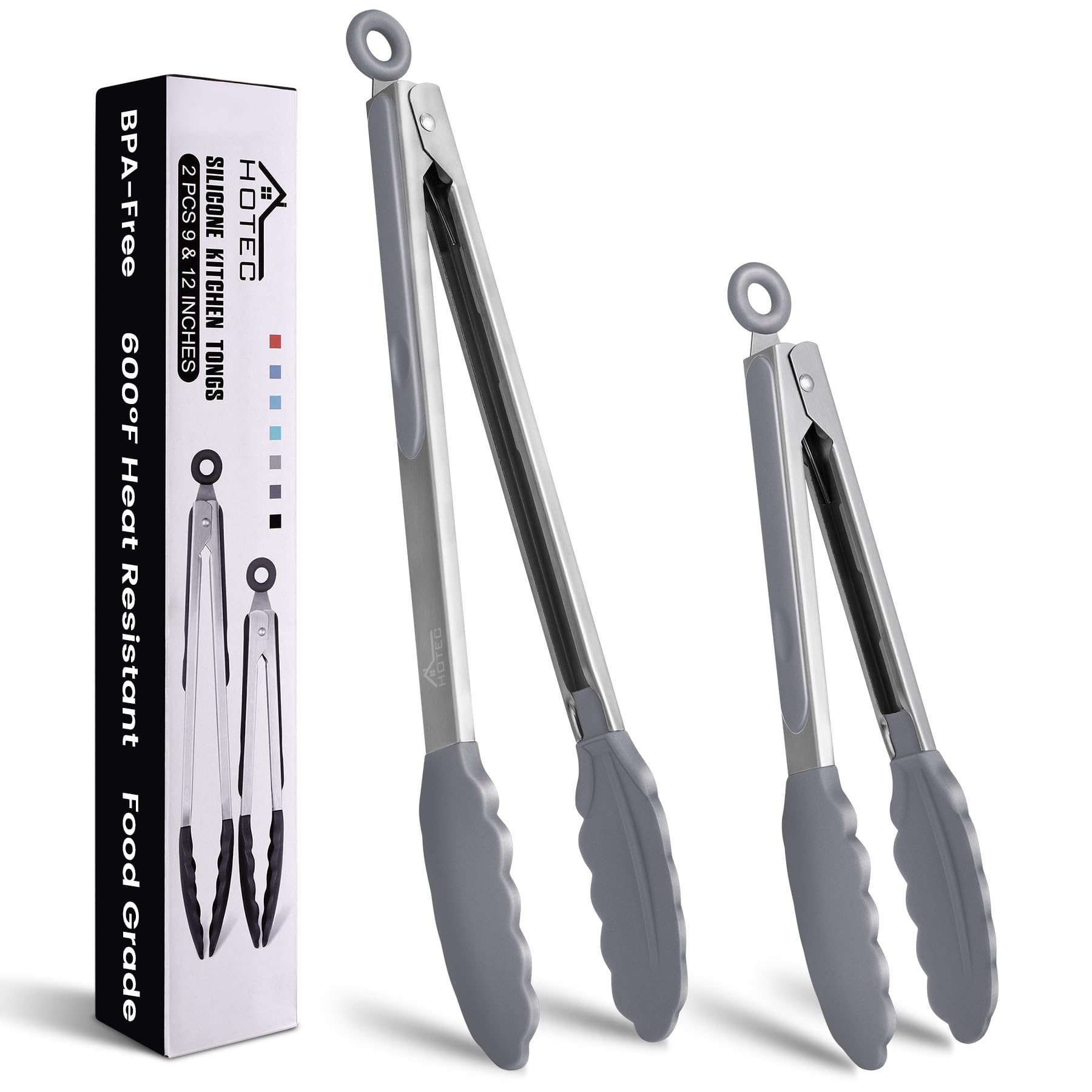 - TOP QUALITY: Hotec kitchen tongs are constructed with high quality stainless steel, sturdy, heat resistance, anti-rust, anti-corrosion, light weight, easy to handle, like new forever. This tongs for cooking comes with 2 sizes, 9 inch and 12 inch. Food safe, Carbonfree Certified.