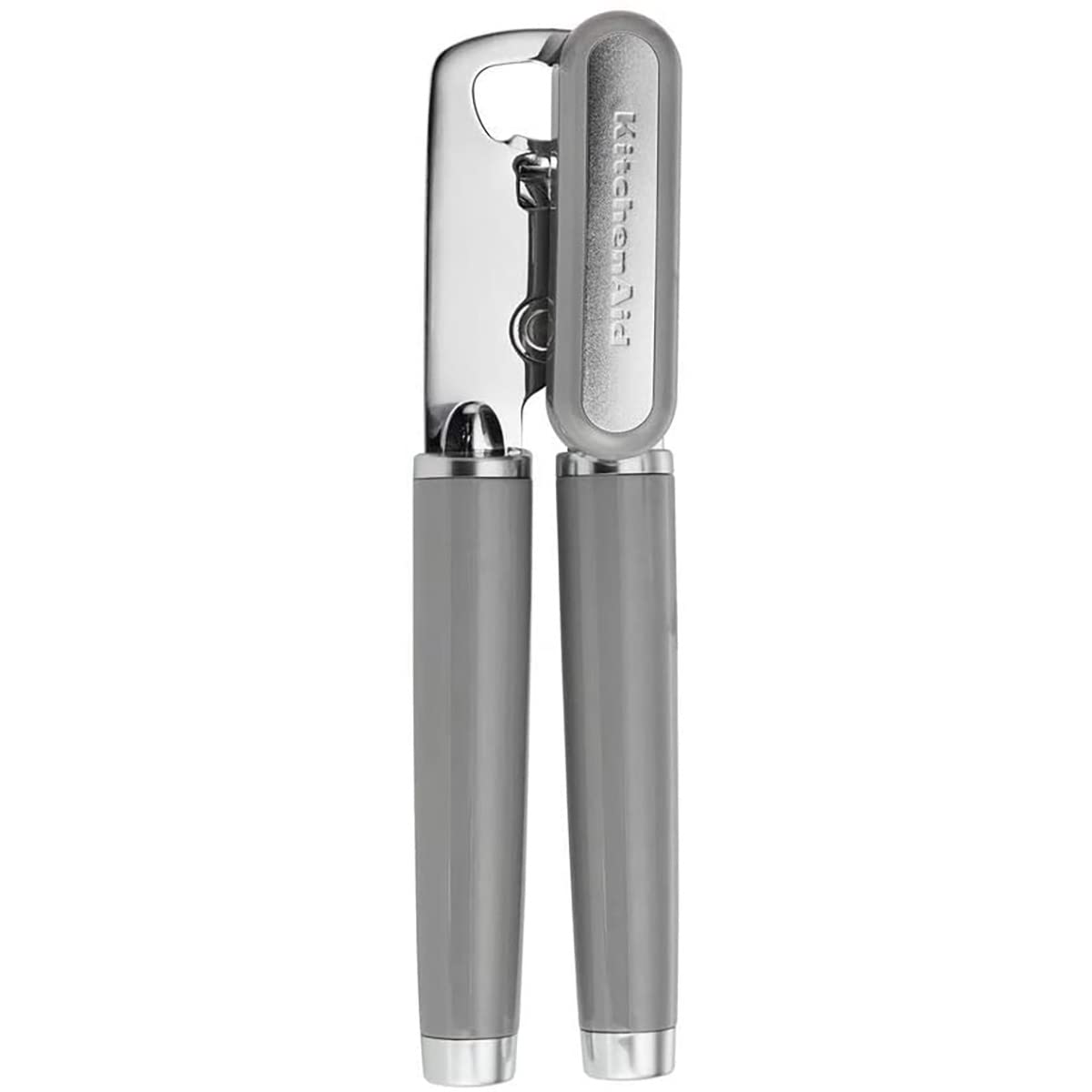 Open any sized can or bottle with the KitchenAid Classic Can Opener. The durable, razor-sharp stainless steel cutting wheel easily pierces and smoothly slices through cans, while the large knob provides a secure grip for effortless turning. The oversized, ergonomic handles provide maximum comfort and control for simple, safe use. This 2-in-1 tool features an integrated bottle opener to remove caps with ease. Hand wash with warm water and a mild detergent; rinse and dry immediately. One year hassle-free replacement and lifetime limited warranty.