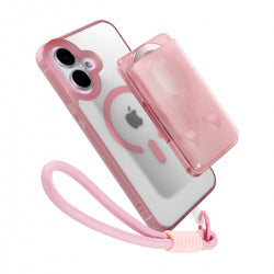 Magnetic Case for iPhone 16 Plus with Card Hold and Lanyard, Translucent Matte Slim Shockproof Compatible with MagSafe - Pink