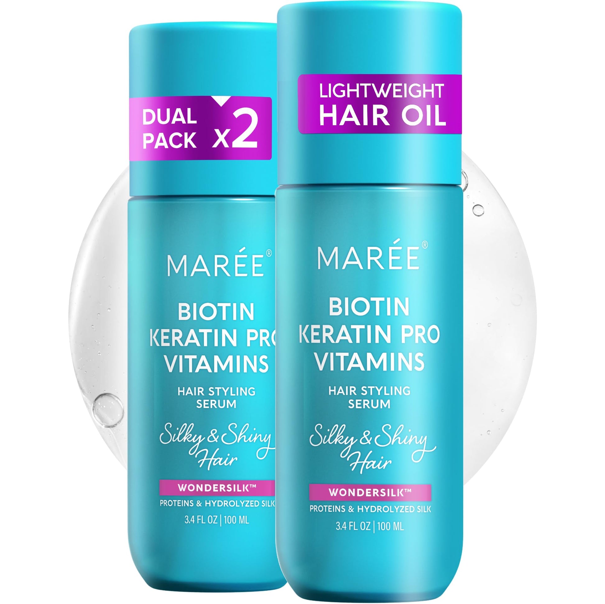 - Hair Smoothing Oil for Dry Strands – This keratin hair oil treatment is formulated with vitamins E, A, B5, keratin, and a blend of oils like argan, jojoba, and macadamia. This antifrizz keratin hair serum formula results in soft, shiny strands.